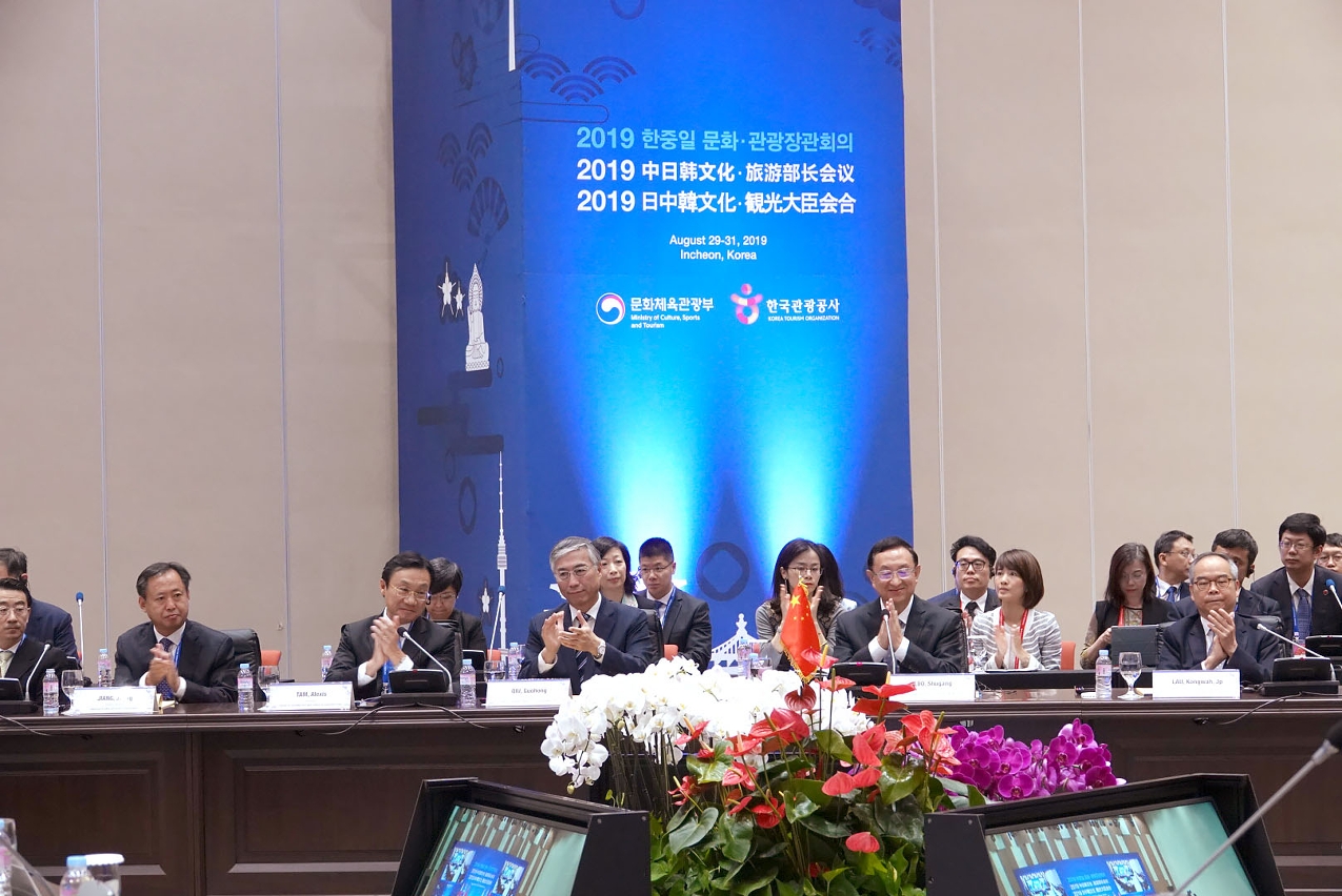 No decorrer da reunião, o Ministro da Cultura, Desporto e Turismo da Coreia do Sul, Park Yang-woo, o Ministro da Educação, Cultura, Desporto, Ciência e Tecnologia do Japão, Shibayama Masahiko e o Ministro das Terras, Infra-estruturas, Transportes e Turismo do Japão, Keiichii Ishii expressaram o desejo de reforçar a integração entre os sectores de cultura e turismo, promover o desenvolvimento das indústrias culturais, acelerar a criação das “cidades culturais da Ásia Oriental” e o intercâmbio entre as cidades. Aproveitando a organização dos Jogos Olímpicos, Jogos Olímpicos do Inverno e Paralímpicos, pela China, Japão e Coreia do Sul, promover o intercâmbio e desenvolvimento cultural e turístico dos três países, incrementar a cooperação na salvaguarda e divulgação do património cultural material e imateral, criar novos meios de intercâmbio facilitando a aprendizagem mútua entre os jovens, artistas e quadros culturais, reforçar a formação para os profissionais do turismo e, através da cooperação trilateral em turismo, é possível fomentar a estabilidade, paz e prosperidade da região nordeste da Ásia.