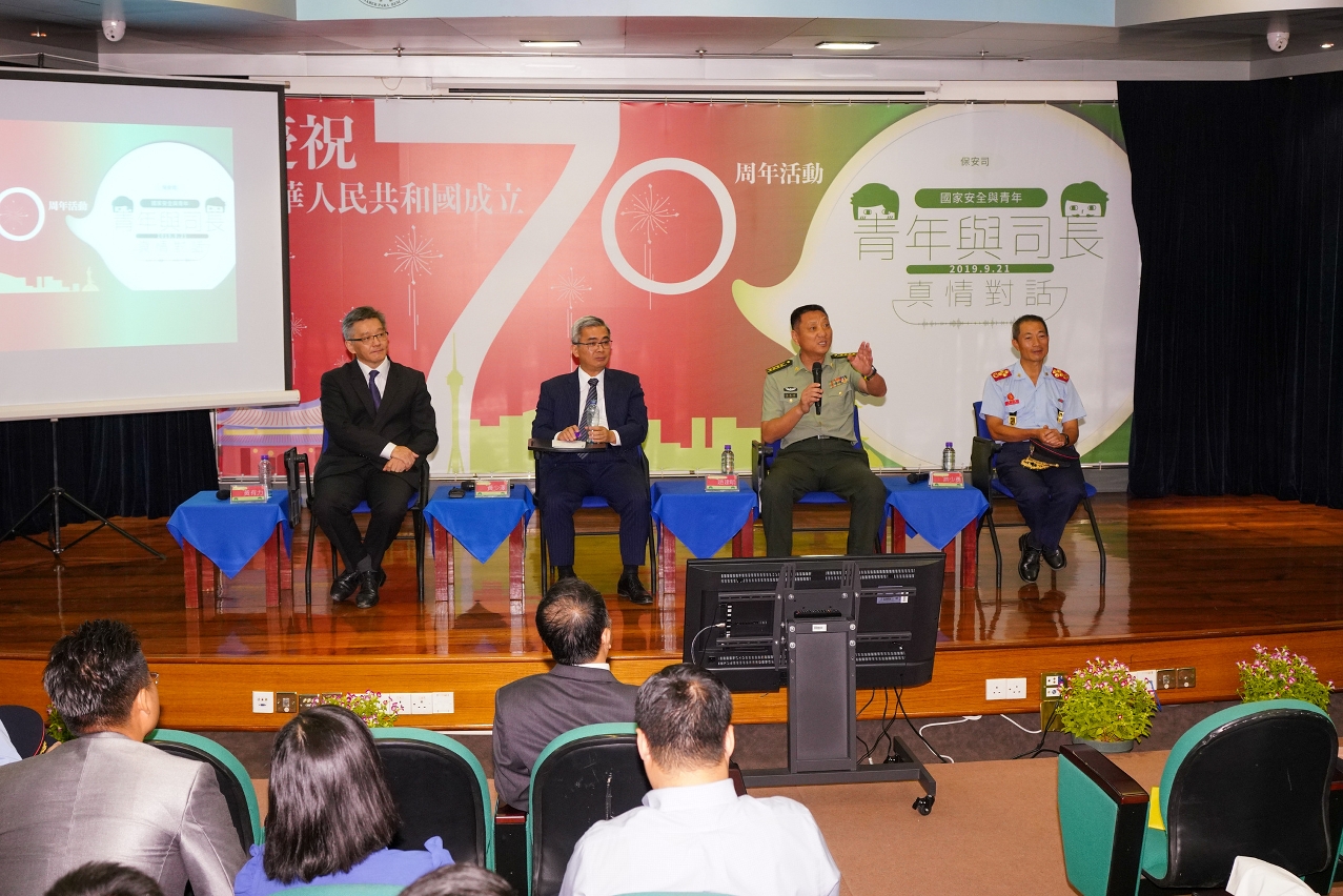 Na sessão de palestras, o Chefe do Estado-Maior da Guarnição em Macau do Exército de Libertação do Povo Chinês, coronel (Senior colonel) Zhao Jianming, abordou o tema “A segurança nacional” e explicou de forma concisa aos jovens de Macau as situações básicas da segurança nacional e de segurança enfrentada, e trocou ideias de forma profunda com os jovens presentes sobre aspectos como consolidar a confiança estratégica, manter a resistência estratégica, elevar a força real estratégica, bem como agarrar o período do desenvolvimento nacional e vencer os desafios e riscos, promovendo os conhcimentos dos jovens sobre a realidade da segurança nacional, estabelecendo de forma resistente o seu conceito da segurança nacional e fortalecer o seu sentido da responsabilidade. De seguida o Secretário Wong abordou o tema “A segurança nacional e a juventude” explicou o papel relevante da Região Administrativa Especial de Macau e dos residentes quanto à defesa da segurança nacional e partilhou com os jovens a relação entre a segurança nacional e a liberdade e direitos dos residentes, bem como o trabalho de Macau nesta área, nomeadamente no que tange à criação e funcionamento da Comissão de Defesa da Segurança do Estado, aos últimos progressos do trabalho legislativo complementar da defesa da segurança do Estado em Macau e ao incremento da divulgação e educação sobre a segurança nacional. Mais afirmou que, sob a coordenação e cooperação do Chefe do Executivo e do Governo da RAEM, as autoridades de segurança continuarão a realizar actividades diversificadas para os jovens, para que os mesmos estejam cientes dos seus deveres para com o Estado e Macau e assumam, com responsabilidade, uma nova Era relativamente aos assuntos da defesa e da segurança do Estado.