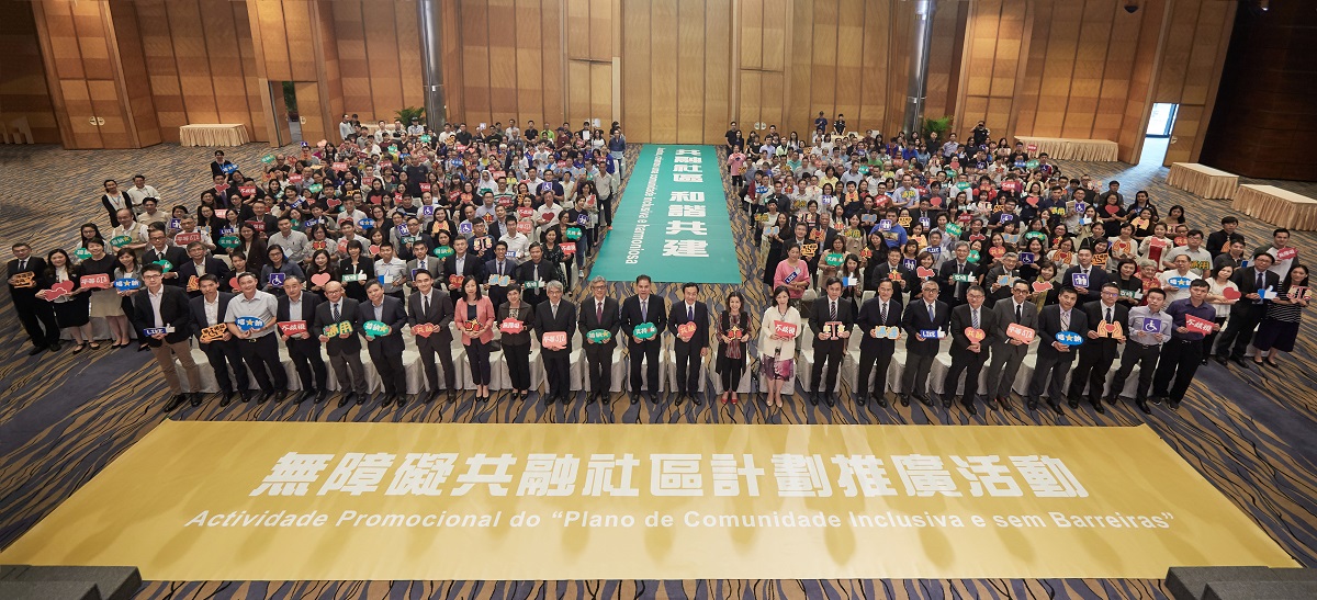 Nos últimos anos, o Governo da RAEM tem impulsionado, de modo empenhado, a criação de uma comunidade inclusiva e livre de barreiras, o que tem vindo a granjear o apoio e acolhimento dos diversos sectores da sociedade, nomeadamente, dos Serviços Públicos, do sector de construção e engenharia e das instituições de serviços sociais. Assim, com a colaboração de todos, é proporcionado aos portadores de deficiência, pessoas idosas, encarregados de educação que têm a seu cargo bebés e crianças, turistas carregados de bagagens, entre outras pessoas necessitadas, um ambiente livre de barreiras tanto na sua vida como nas suas deslocações.