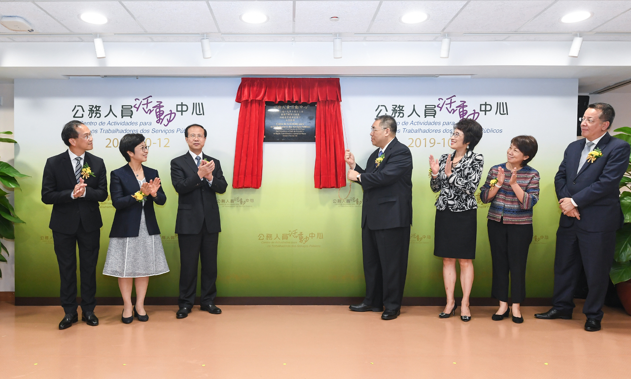 No intuito de proporcionar mais espaço para a realização de actividades e serviços destinados aos trabalhadores dos serviços públicos, a Direcção dos Serviços de Administração e Função Pública (SAFP) inaugura na Taipa o “Centro de Actividades para os Trabalhadores dos Serviços Públicos”. A cerimónia de inauguração, que teve início hoje, dia 12, ao meio-dia, presidida pelo Chefe do Executivo, Chui Sai On, contou com a presença do Director do Gabinete de Ligação do Governo Central na RAEM, Fu Ziying, da Comissária-adjunta do Comissariado do Ministério dos Negócios Estrangeiros da RPC na RAEM, Wang Dong, da Secretária para a Administração e Justiça, Chan Hoi Fan, da Chefe do Gabinete da Secretária para a Administração e Justiça, Iao Man Leng, do Director do SAFP, Kou Peng Kuan, do Presidente do Conselho de Administração do Instituto para os Assuntos Municipais, José Tavares, bem como dos representantes de diversos Serviços Públicos e associações, num total de dezenas de participantes e convidados.