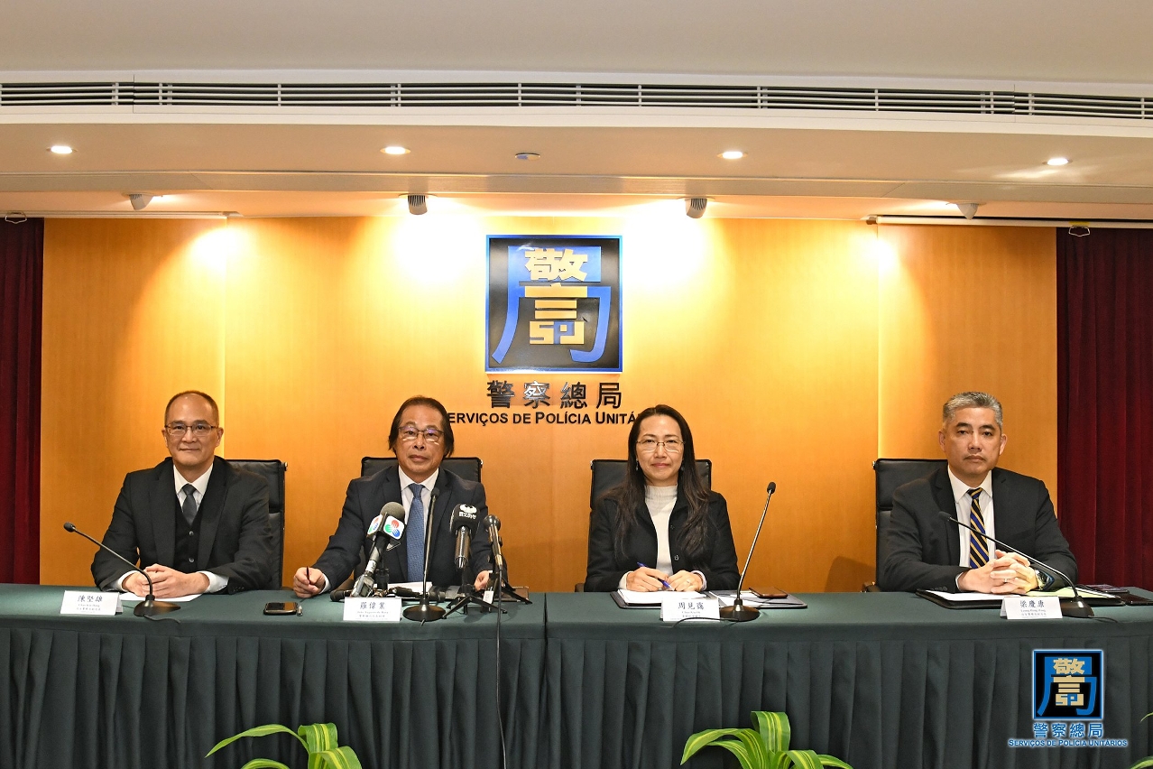 Realizou-se, hoje (dia 10 de Dezembro), pelas 15h00, em simultâneo com as autoridades policiais de Guangdong, Hong Kong e Macau, a conferência de imprensa sobre o balanço da Operação “Trovoada 2019”. A conferência em Macau teve lugar nos Serviços de Polícia Unitários (SPU) e foi presidida pelo Adjunto do Comandante-geral dos SPU, João Augusto da Rosa, com a presença da Adjunta do Director-geral dos Serviços de Alfândega (SA), Chau Kin Oi, Subdirector da Polícia Judiciária (PJ), Chan Kin Hong e Segundo-comandante do Corpo de Polícia de Segurança Pública (CPSP), Leong Heng Hong.