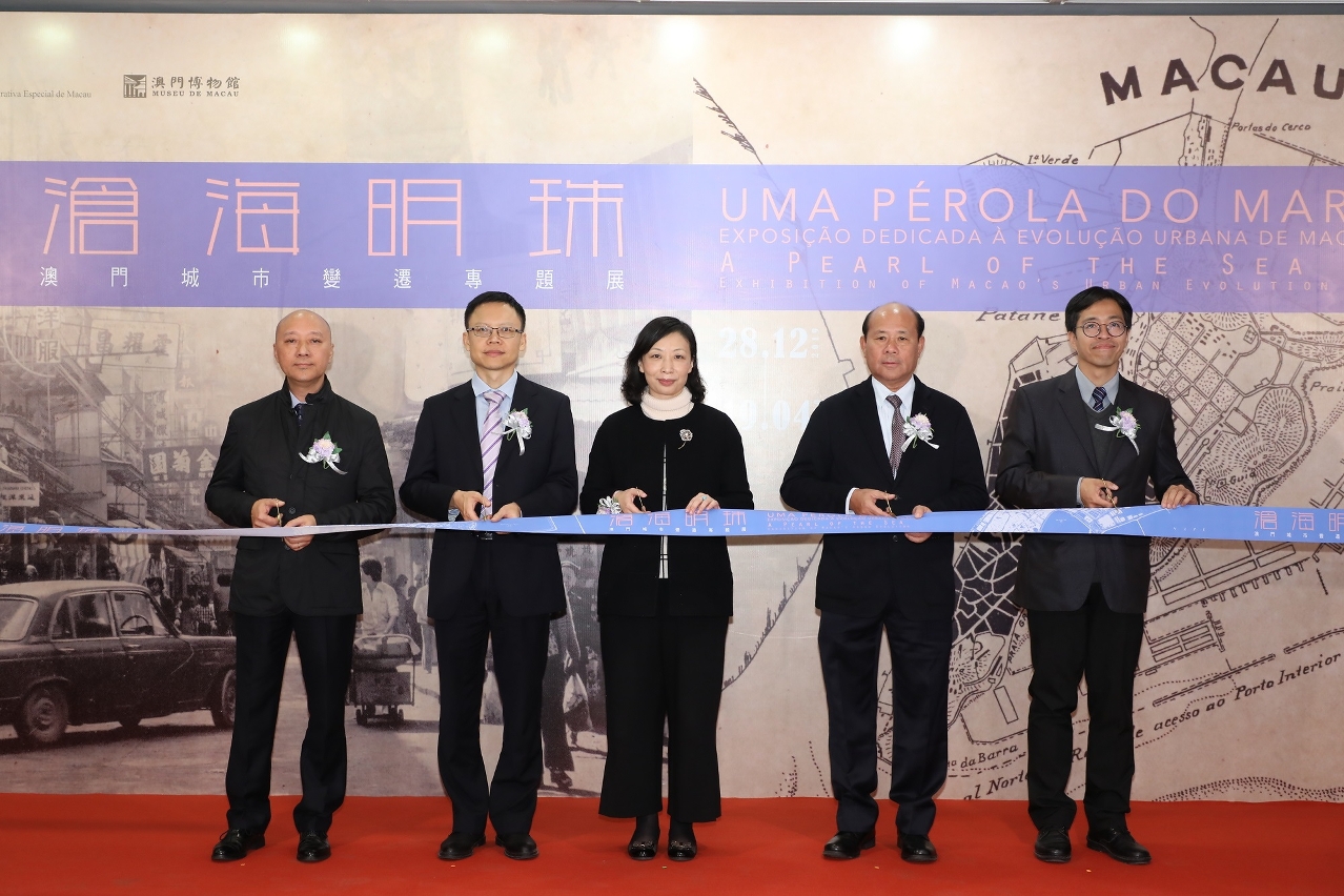 Em celebração do 70.º aniversário da fundação da República Popular da China e do 20.º aniversário da Transferência da Administração de Macau para a China, o Museu de Macau, sob a égide do Instituto Cultural, organizou “Uma Pérola do Mar – Exposição Dedicada à Evolução Urbana de Macau”, cuja cerimónia de inauguração teve lugar no dia 27 de Dezembro, pelas 18:30 horas, no Museu de Macau, sendo oficiada pela Presidente do Instituto Cultural do Governo da RAEM, Mok Ian Ian; pelo Vice-Chefe da Divisão de Cultura e Desporto do Departamento de Propaganda e Cultura do Gabinete de Ligação do Governo Popular Central na RAEM, Xin Jianbo; pelo membro do Conselho do Património Cultural, Ip Tat; pelo Presidente da Associação dos Artistas de Belas-Artes de Macau, Lok Hei; e pelo Chefe, substituto, do Departamento de Museus do Instituto Cultural da RAEM, Loi Chi Pang. A exposição está patente até ao dia 19 de Abril de 2020, sendo aberta ao público em geral.