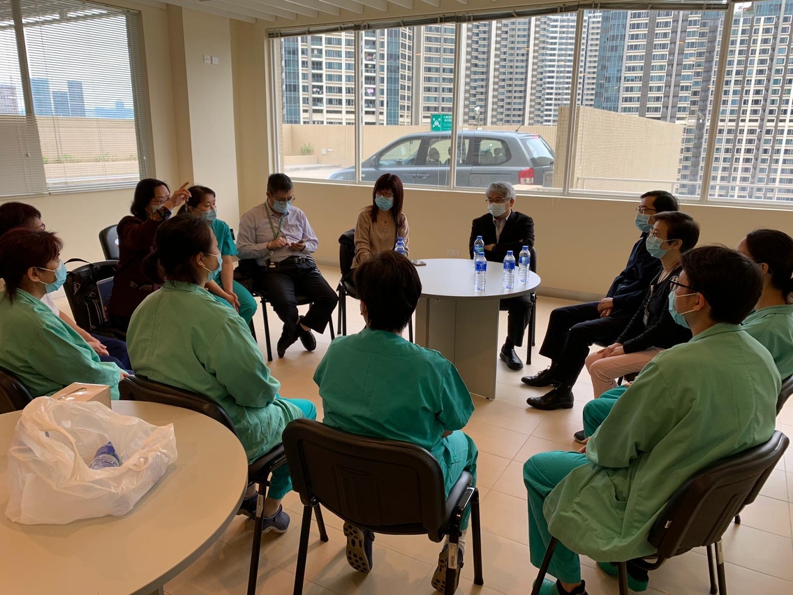 Desde o início dos trabalhos de combate à epidemia, a Direcção dos Serviços de Saúde criou um grupo de Wechat com mais de 500 profissionais de saúde da linha da frente, de modo a recolher directamente os problemas encontrados durante a luta contra a epidemia, auscultar as suas opiniões e prestar rapidamente soluções, encorajando o pessoal da linha da frente para esforçar-se conjuntamente nos trabalhos de combate à epidemia.