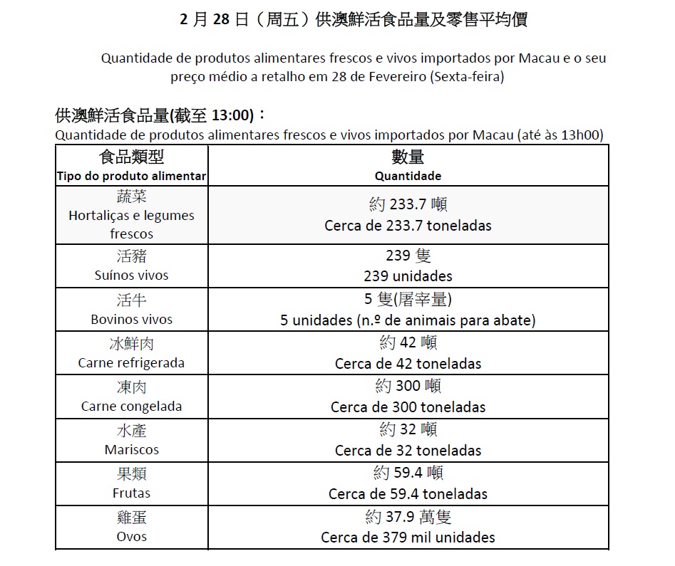 (Os cidadãos podem consultar ainda os preços de outros itens através do website do IAM: https://www.iam.gov.mo/p/onedaymarketvalue/menulist/)