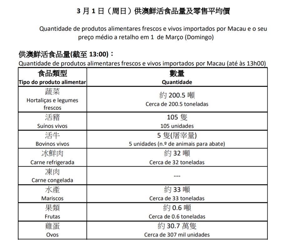 (Os cidadãos podem consultar ainda os preços de outros itens através do website do IAM: https://www.iam.gov.mo/p/onedaymarketvalue/menulist/)