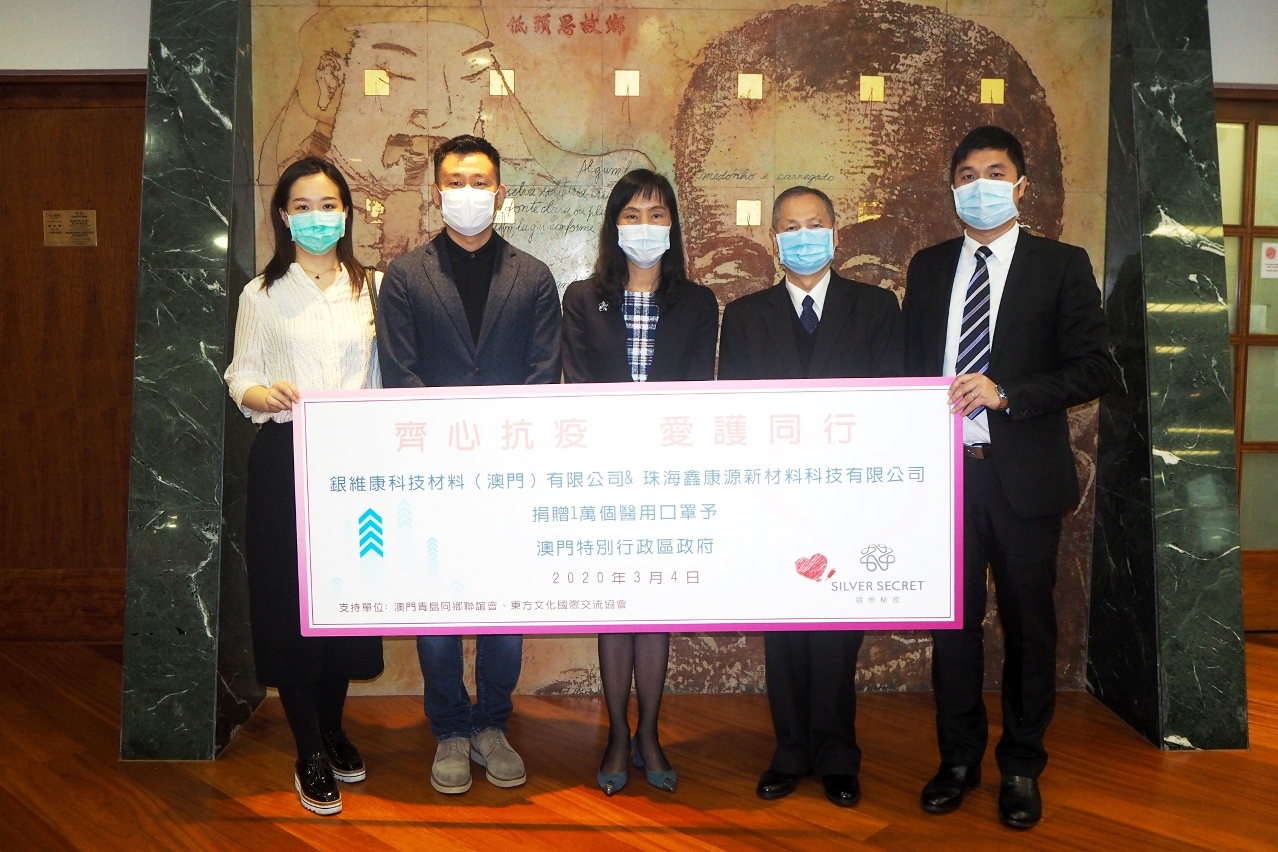 A Associação Geral dos Conterrâneos e Amigos da Província de Guangxi em Macau e a Empresa JBT ofereceram, respectivamente, 100 mil e 10 mil máscaras. A “Oriental Cultura Associação de Intercâmbio”, a Companhia Silver Care (Macau) Ltd. e a Associação de Amizade e Conterrâneos de Qingdao de Macau doaram, no total, 10 mil máscaras. As máscaras doadas serão entregues aos Serviços de Saúde, de acordo com o pedido dos doadores.