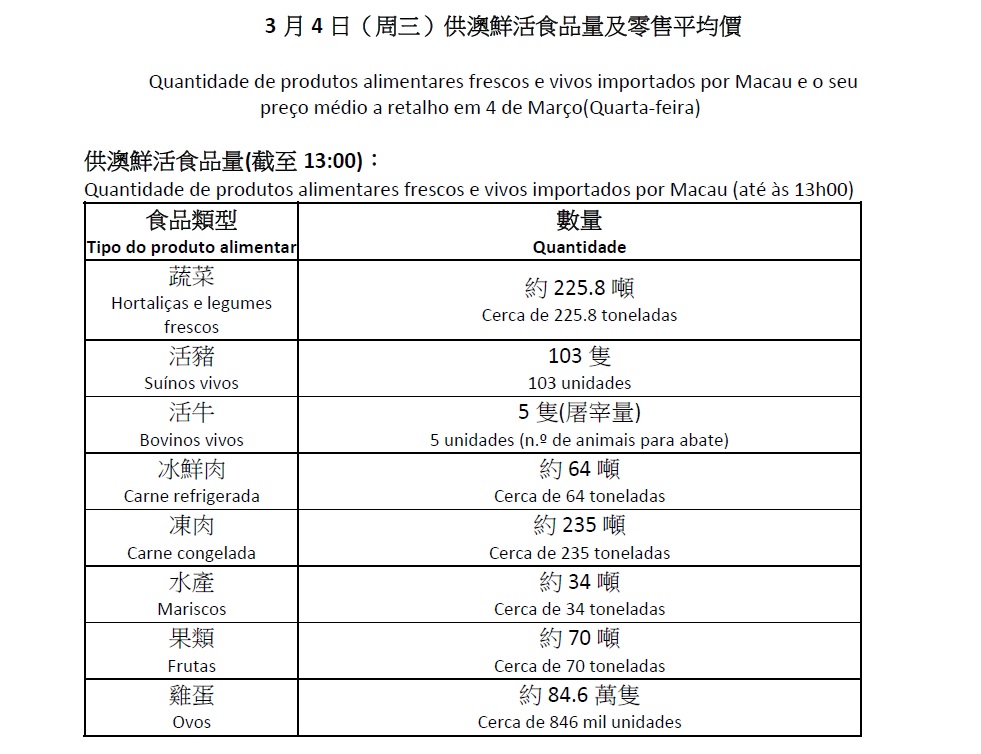 (Os cidadãos podem consultar ainda os preços de outros itens através do website do IAM: https://www.iam.gov.mo/p/onedaymarketvalue/menulist/)