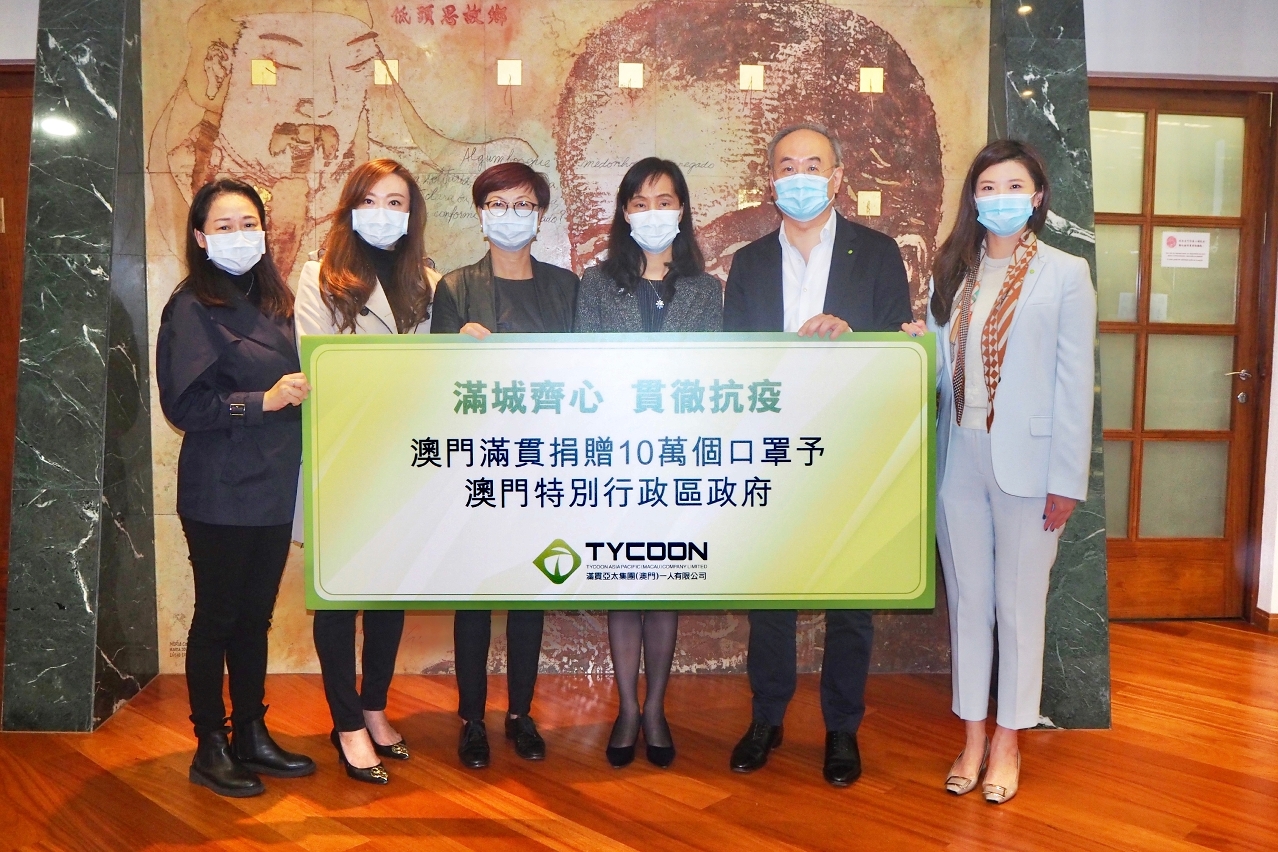 A Tycoon Asia Pacific Grupo (Macau) Sociedade Unipessoal Limitada doou, através da empresa Deloitte Serviços Consultadoria Limitada, 100 mil máscaras, a Cross-Strait Association of Women Entrepreneurs of Macau ofereceu 50 mil máscaras e a Macao International Culture and Sports Industries Association ofereceu 20 mil máscaras. Todas as máscaras foram entregues aos Serviços de Saúde, de acordo com o pedido das doadoras.