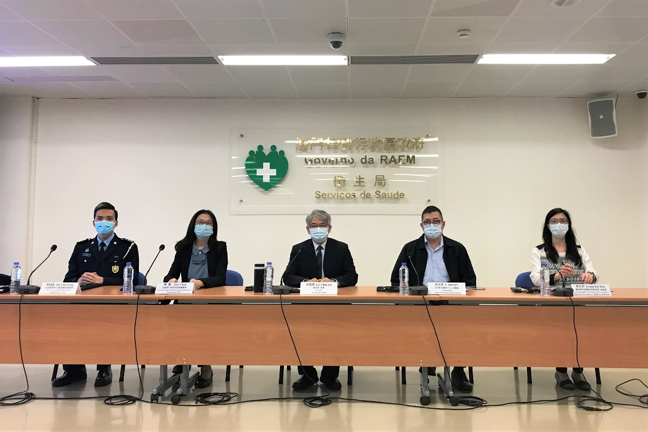 Estiveram presentes na conferência de imprensa do Centro de Coordenação de Contingência do Novo Tipo de Coronavírus: o director dos Serviços de Saúde, Lei Chin Ion, a Chefe do Departamento de Licenciamento e Inspecção da Direcção dos Serviços de Turismo, Dr.ª Inês Chan, o Chefe da Divisão de Operações e Comunicações do Corpo de Polícia de Segurança Pública, Dr. Ma Chio Hong, a coordenador do Centro de Prevenção e Controlo da doença, Leong Iek Hou e o coordenador do Centro Clínico de Saúde Pública, U Sio On.