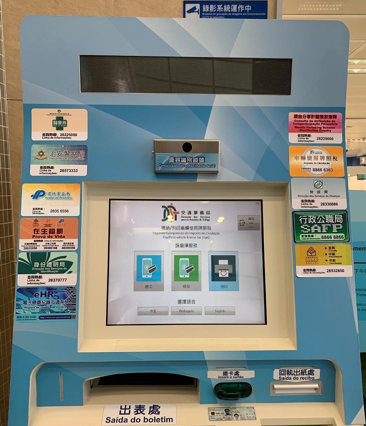 Em articulação com os trabalhos de prevenção epidémica e a fim de evitar a aglomeração de pessoas nas instalações, os proprietários de veículos podem pagar o imposto de circulação, através dos meios electrónicos, nomeadamente, na página electrónica https://epay.dsat.gov.mo, na aplicação móvel “Posto de Informação de Tráfego”, e nos quiosques de serviços de auto-atendimento nos quais, também, se pode obter o dístico mediante impressão no momento.