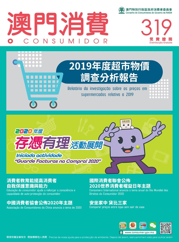 Na revista “O Consumidor” n.º 319 também foram publicados os artigos sobre o tema anual da Consumers International e o da Associação de Consumidores da China para 2020, que foram os seguintes, respectivamente: “O Consumidor Sustentável” e “Unir as Forças Nossas”. Pode-se ainda encontrar um texto de “dicas de consumo” que apresenta, através da partilha de casos, a protecção legal dos direitos do consumidor na transacção de consumo.