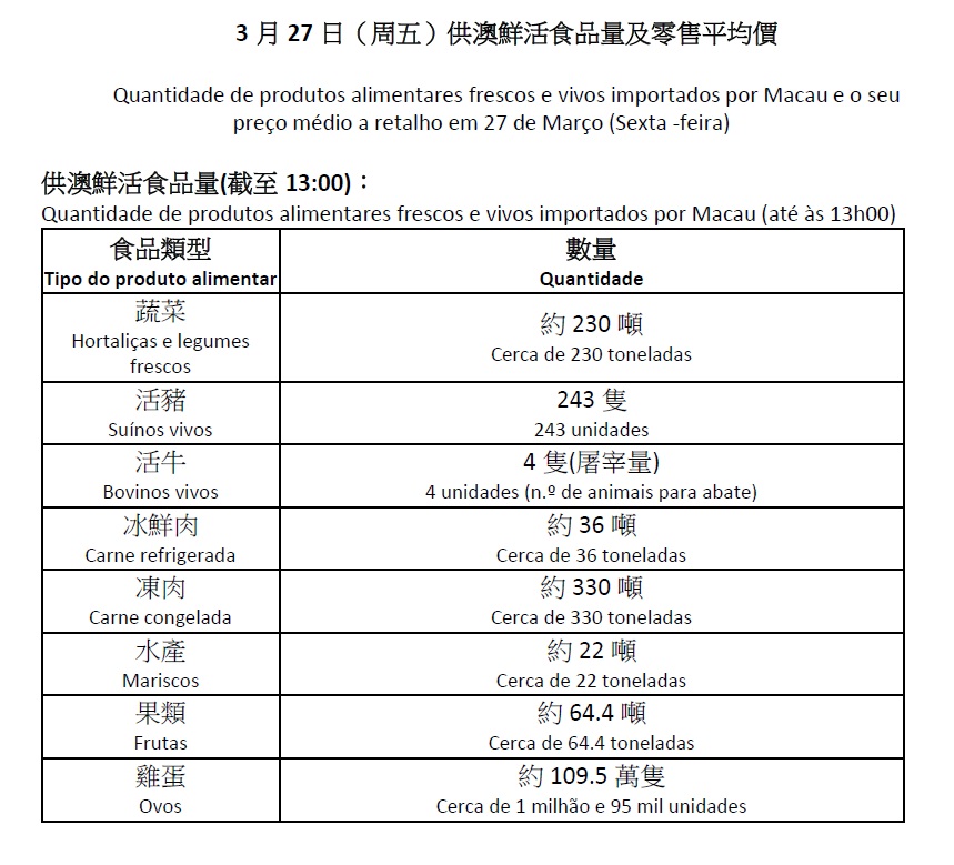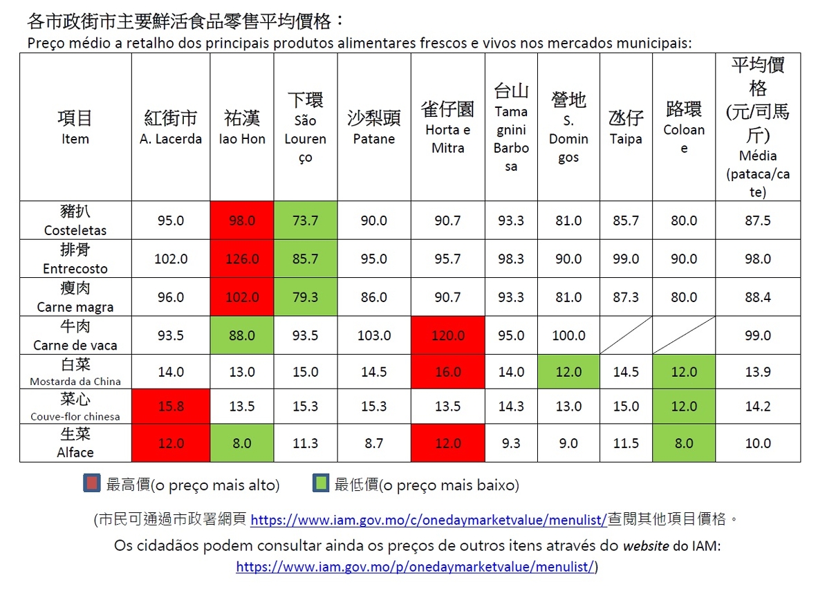 (Os cidadãos podem consultar ainda os preços de outros itens através do website do IAM: https://www.iam.gov.mo/p/onedaymarketvalue/menulist/)