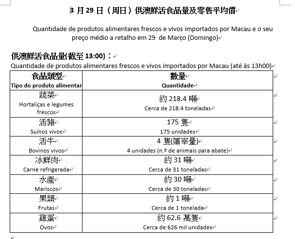 (Os cidadãos podem consultar ainda os preços de outros itens através do website do IAM: https://www.iam.gov.mo/p/onedaymarketvalue/menulist/)