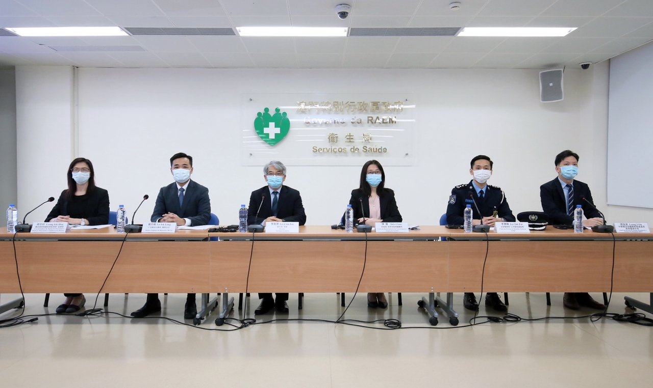 Estiveram presentes na conferência de imprensa: o Director dos Serviços de Saúde, Dr. Lei Chin Ion, o Médico-Adjunto da Direcção do CHCSJ, Dr. Lo Iek Long, a Chefe do Departamento de Licenciamento e Inspecção da Direcção dos Serviços de Turismo, Dr.ª Inês Chan, o Chefe da Divisão do Ensino Secundário e Técnico-Profissional da Direcção dos Serviços de Educação e Juventude, Dr. Leong I On, o Chefe da Divisão de Ligação entre Polícia e Comunidade e Relações Públicas, Dr. Lei Tak Fai, e a Coordenador do Centro de Prevenção e Controlo da doença, Dr.ª Leong Iek Hou.