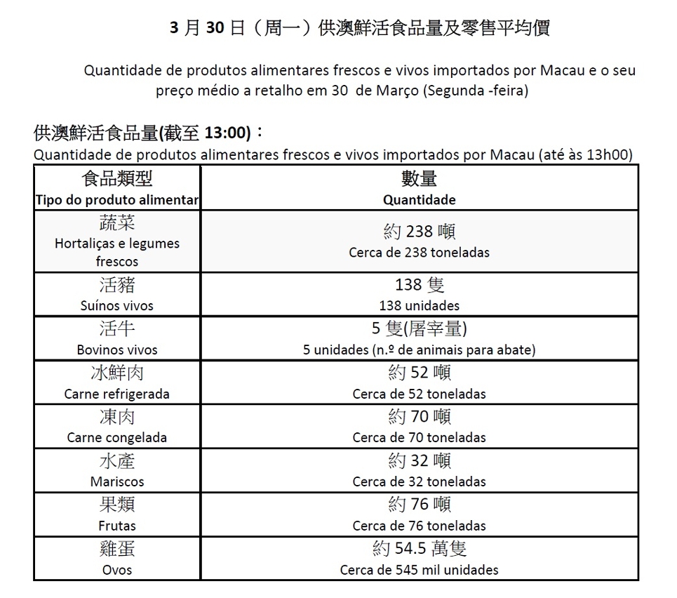 (Os cidadãos podem consultar ainda os preços de outros itens através do website do IAM: https://www.iam.gov.mo/p/onedaymarketvalue/menulist/)