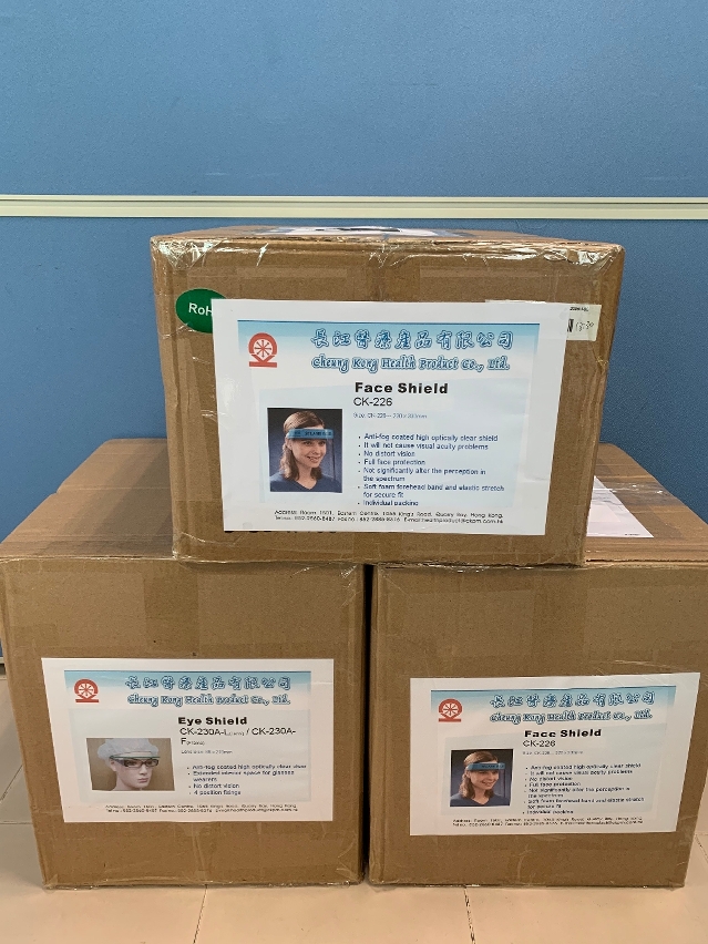 A Companhia de Produtos Médicos Cheung Kong Limitada (Cheung Kong Health Product Co.) doou ao Governo da RAEM, materiais de prevenção da epidemia que incluem 200 viseiras de protecção facial e 500 óculos de protecção. Estes materiais foram recebidos pelos Serviços de Saúde, em nome do Governo da RAEM, e serão usados no trabalho de prevenção epidémica.
