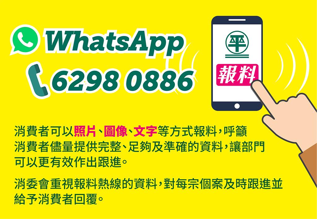 No caso de descobrir qualquer questão de consumo, como sobre a fixação de preços, os consumidores podem denunciar junto do CC através da linha aberta de WhatsApp “6298 0886”. Com o esforço envidado conjuntamente pelo Governo e pela população, o CC irá acompanhar e corrigir questões de elevação de preços aproveitando a linha aberta supramencionada, de modo a manter a ordem no mercado e salvaguardar os direitos e interesses do consumidor.