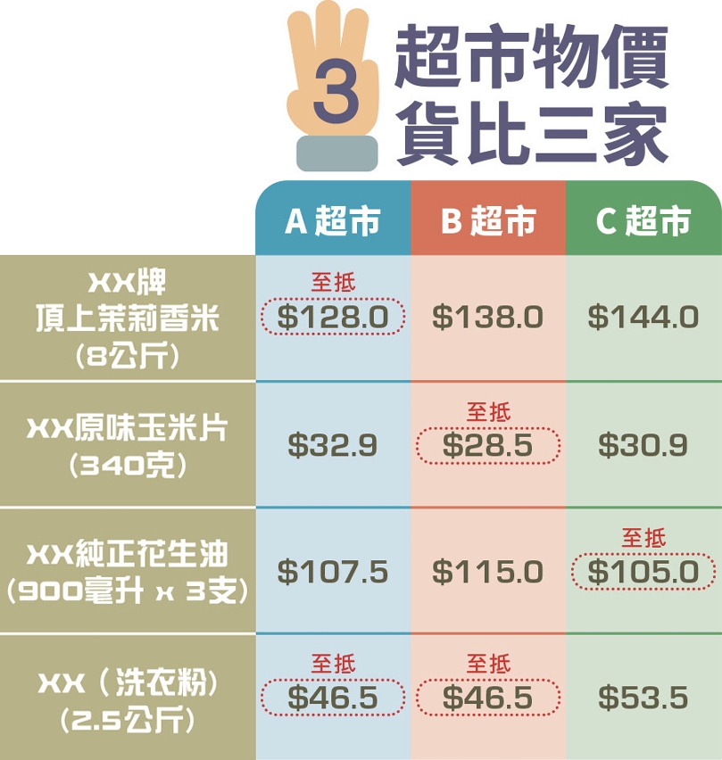 Actualmente, o CC divulga semanalmente os preços de mais de cem produtos, de seis categorias diferentes, encontrados à venda em 44 supermercados locais, bem como a oscilação de preços desses produtos através da página electrónica e aplicação informática do Posto das Informações de Preços de Macau. A citada investigação reflecte que, em termos gerais, o preço dos produtos investigados varia entre locais de venda, sendo, em alguns casos, a diferença de preços até mais de 50%. Assim sendo, sugere-se que os consumidores comparem preços com recurso ao Posto das Informações, dado que as opções dos consumidores podem servir de factor que motiva as lojas a vender produtos a um preço mais razoável para atrair consumo.