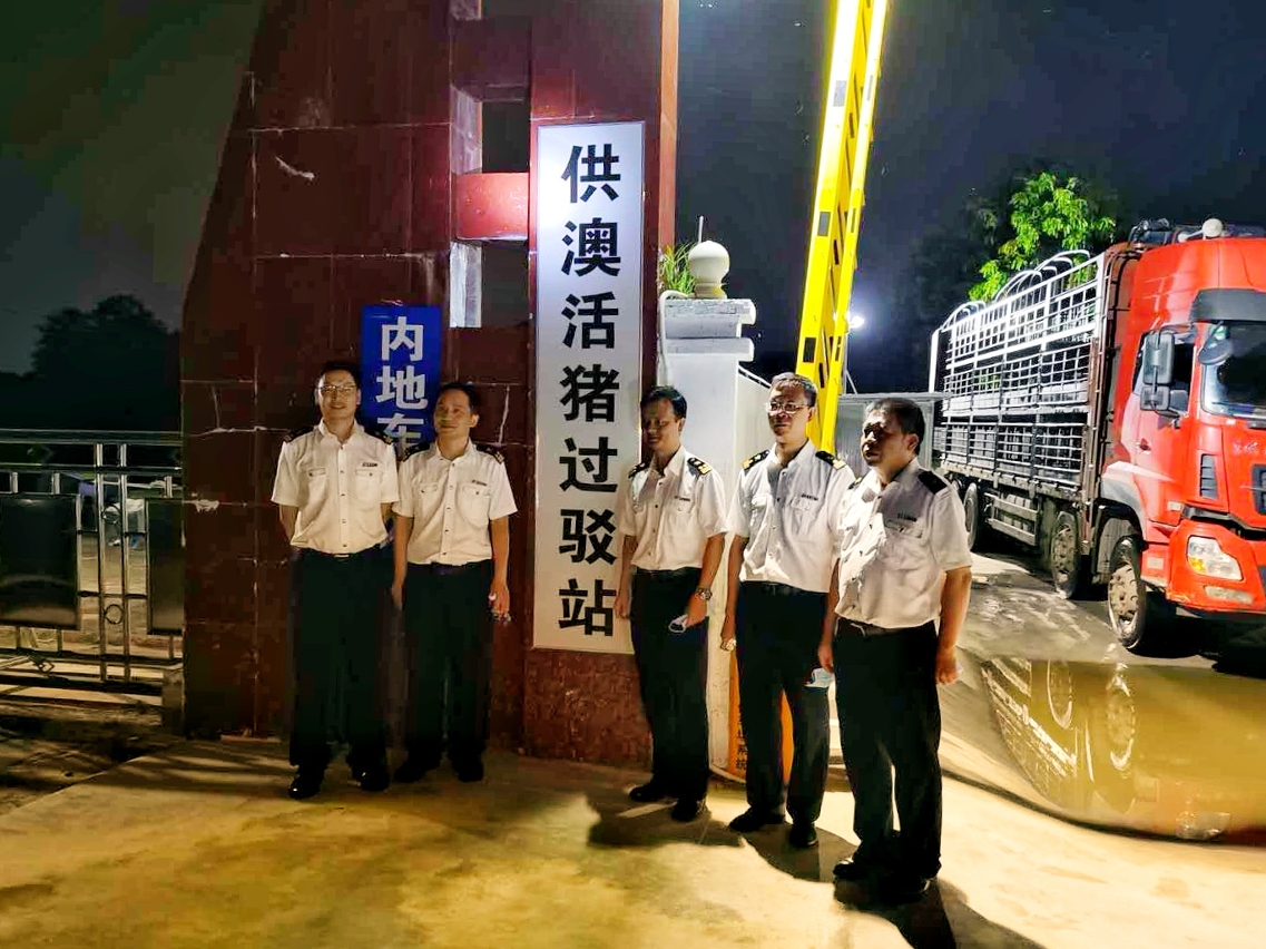 O Governo da RAEM atribui grande importância ao intuito de que seja assegurado o regular fornecimento da carne suína fresca a Macau, pelo que, após o surto da peste suína no Interior da China, apoiou a Sociedade Nam Kuong e a Sociedade Nam Yue, na procura de meios para aumentar o fornecimento de porcos vivos a Macau. A construção, em Doumen, de um ponto de trânsito de animais vivos suscitou forte empenho por parte dos respectivos serviços do Interior da China e revelou-se um decisivo contributo. De salientar que os trabalhos de recepção e de acompanhamento do ponto de trânsito, efectuados pessoalmente pelo dirigente dos Serviços de Alfândega de Gongbei, permitem garantir que a entrada em funcionamento se efectue de acordo com o plano previamente definido, desempenhando um papel preponderante na garantia de um consistente sistema de regular fornecimento de produtos alimentares frescos a Macau.