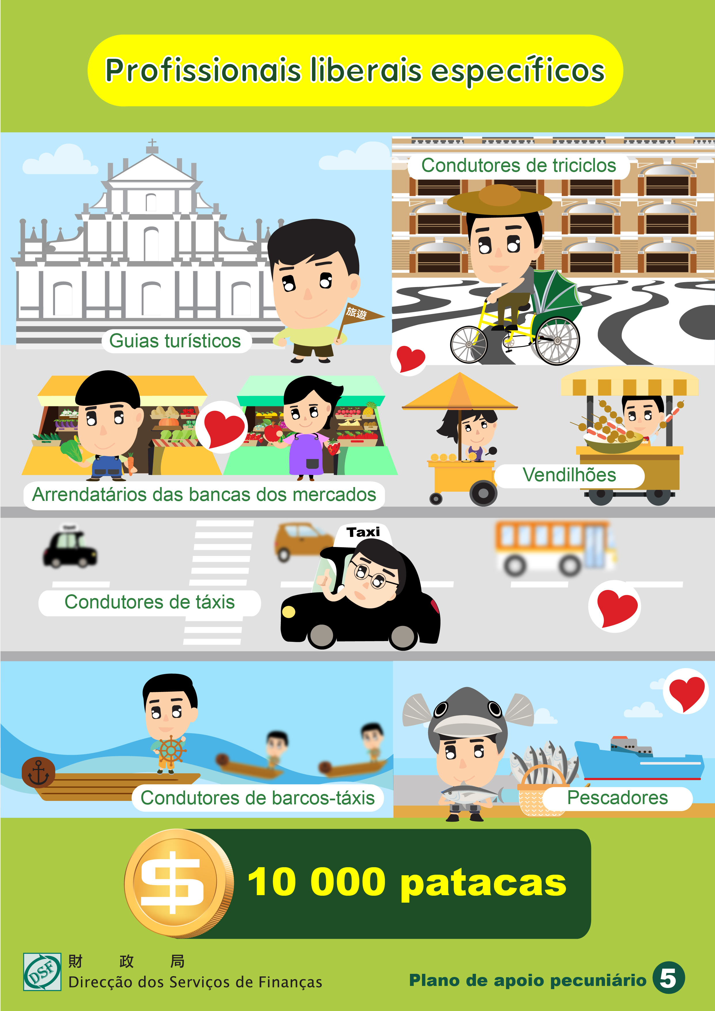 Nos termos do Regulamento Administrativo atrás citado, é atribuído um montante de: 15 000 patacas aos profissionais liberais e aos operadores de estabelecimentos comerciais, que não tenham trabalhadores contratados; 10 000 patacas aos profissionais liberais que se dediquem a sectores específicos; entre as 50 000 e as 200 000 patacas aos profissionais liberais e aos operadores de estabelecimentos comerciais, que tenham trabalhadores contratados.