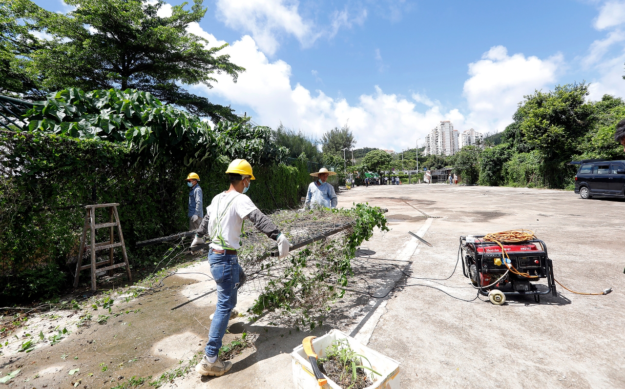 Hoje (dia 17) o Governo da RAEM procedeu a uma acção conjunta interdepartamental para recuperar um terreno do Estado com 1 400 m2 situado junto à Praia de Hac Sá em Coloane.