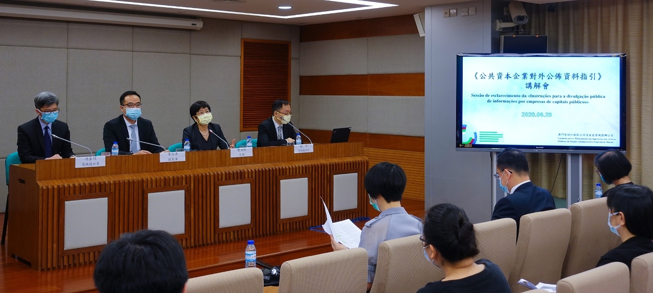 As «Instruções para a divulgação pública de informações por empresas de capitais públicos» (doravante designadas por «Instruções»), publicadas através do Despacho do Chefe do Executivo n.º 133/2020, entraram em vigor no dia 23 de Junho do corrente ano. Para esclarecer às empresas de capitais públicos os assuntos sobre a divulgação das informações, o Gabinete para o Planeamento da Supervisão dos Activos Públicos da Região Administrativa Especial de Macau (doravante designado por GPSAP), realizou, em 29 de Junho, às 10H00, uma sessão de esclarecimento, no Auditório do Centro de Formação para os Trabalhadores dos Serviços Públicos no 7.º andar do Edifício Centro Comercial Cheng Feng. Cerca de 50 representantes das empresas de capitais públicos participaram na sessão de esclarecimento.