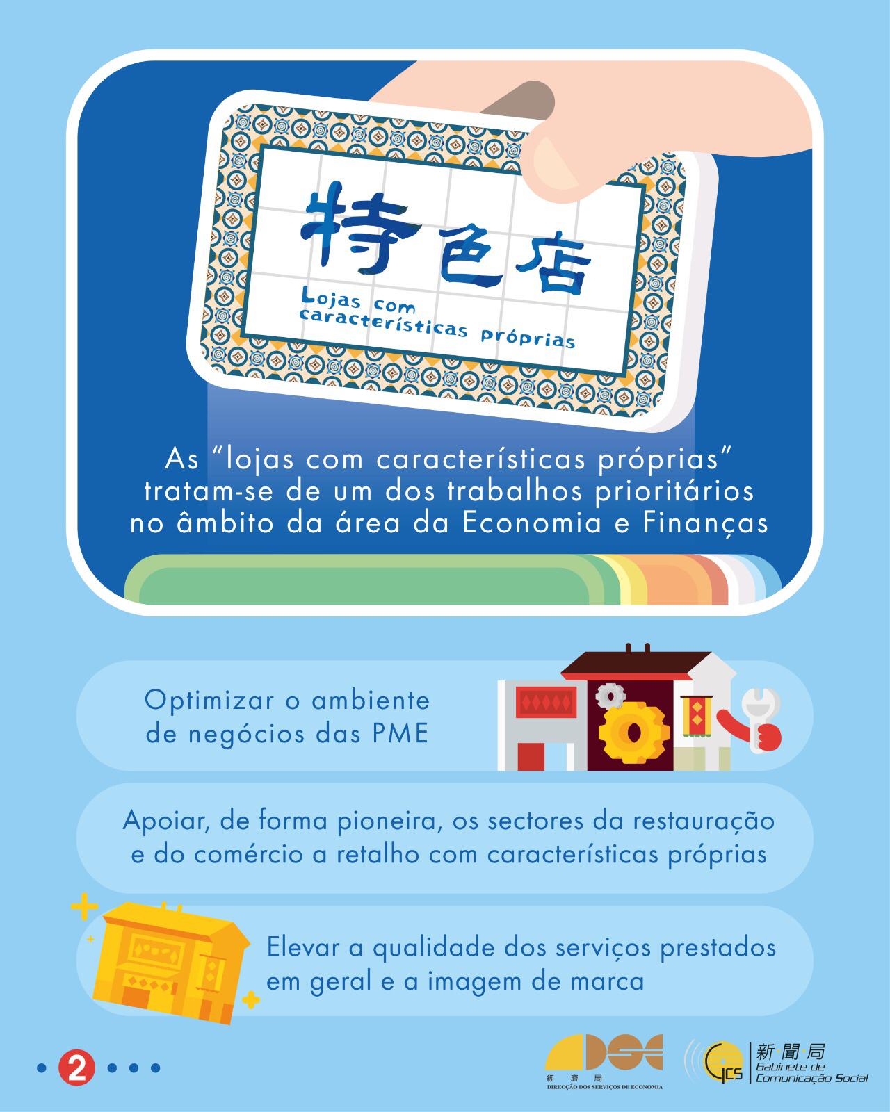 Na primeira fase do Plano, vai ser lançado, de forma pioneira, na Rua de 5 de Outubro (uma zona rica em história humana), tornando-se numa zona com imagem de características próprias e num ponto onde as pessoas costumam visitar. Ao mesmo tempo, serão proporcionados diferentes tipos de apoios a essas lojas com características próprias, nomeadamente, cursos de formação particularmente em prol do melhoramento da gestão, exploração de negócio e técnicas, e apoiá-las a obterem as respectivas certificações de qualificação, o que contribuirá para promover um novo patamar do desenvolvimento qualitativo das lojas com características próprias.
