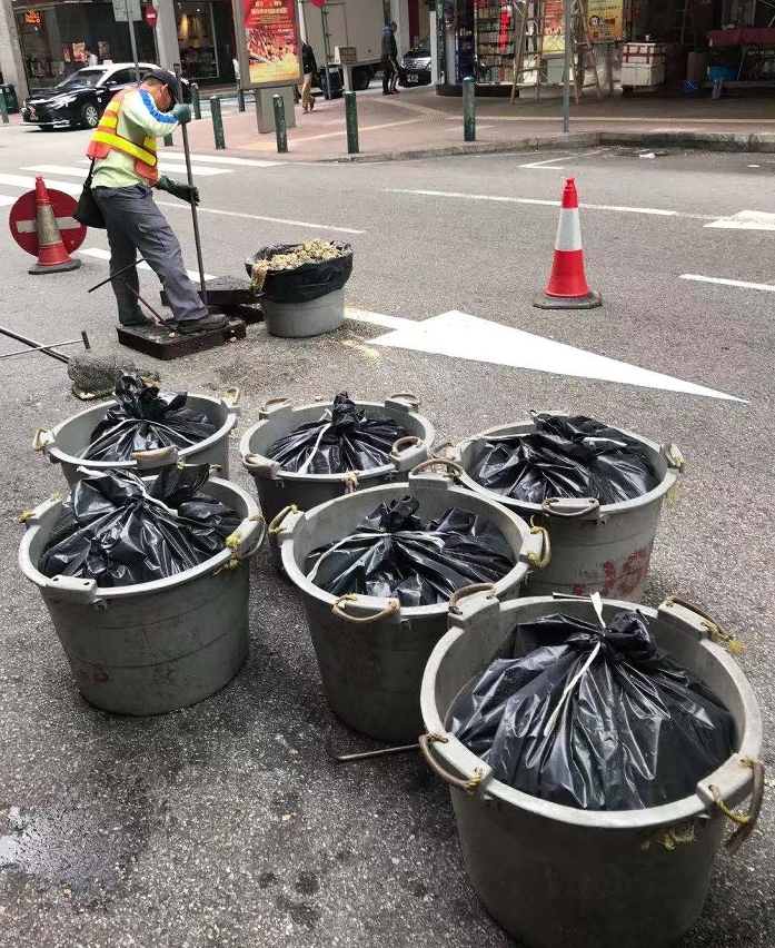 Nas vistorias diárias e na limpeza da rede de drenagem, o IAM sempre verificou que o funcionamento da rede de drenagem fica impedido pela condensação de óleo e por argamassa de cimento. Recentemente, os seus trabalhadores descobriram, durante a investigação, que os esgotos de águas pluviais estão quase totalmente bloqueados por argamassa de cimento, sendo necessário proceder à remoção urgente. Foram removidos, do canal de cerca de 700 metros de comprimento total, mais de 120 metros cúbicos de fragmentos de cimento e de lixo. Quer a alteração ilegal da ligação dos canais entre as habitações e as lojas comerciais, quer a falta de instalação de caixa retentora de gorduras adequada, a falta de limpeza das respectivas instalações por parte dos estabelecimentos de comidas e a descarga ilegal de argamassa de cimento e água suja de lama amarela nos estaleiros de obras, entre outros factores, afectam gravemente a capacidade de drenagem dos esgotos, agravando as inundações. O IAM apela às diversas forças sociais para protegerem, em conjunto, a rede de esgotos, não despejando lixos sólidos e resíduos de óleo nos esgotos, a fim de evitar entupimento e obstrução da drenagem normal dos sumidouros e dos esgotos. Até Maio do corrente ano, o pessoal do IAM efectuou, no total, 1827 vistorias a estabelecimentos de comidas e bebidas e estaleiros de obras de construção, tendo emitido 167 autos de notícia e avisos para lhes notificar sobre a limpeza das caixas retentoras de gorduras.