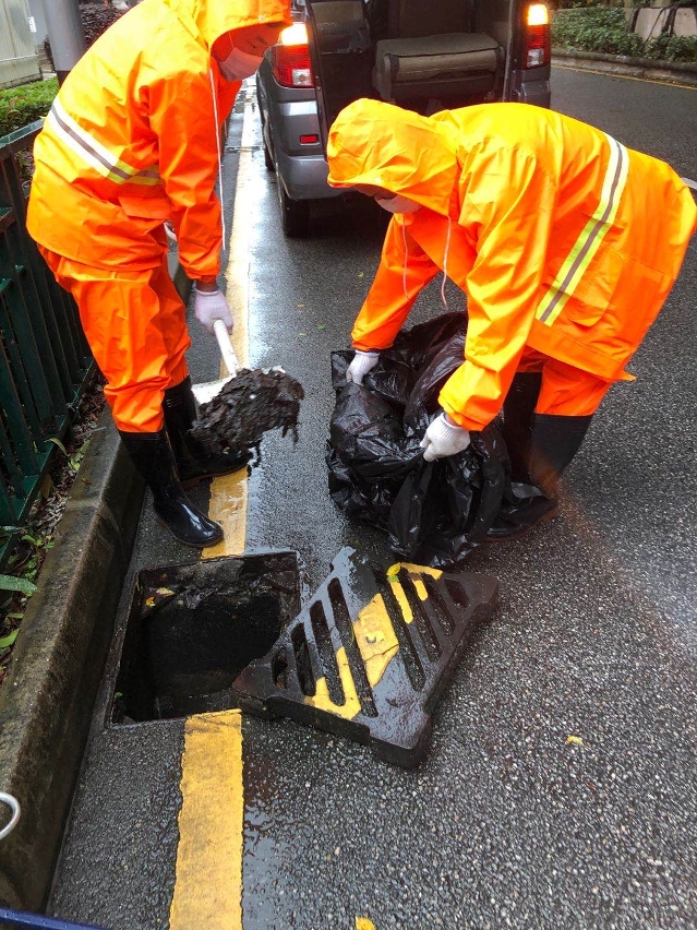 Com o intuito de garantir o bom funcionamento dos esgotos, o IAM já inspeccionou regularmente as condições de caixas de visita, sumidouros e esgotos nas diversas vias, recorrendo ainda a máquinas como veículo de bombeamento e alta pressão hidráulica, para realizar os trabalhos de desentupimento, limpeza e manutenção. Antes da época de tufões e chuvas, ainda é preciso reforçar a monitorização da rede de esgotos nos pontos prioritários. Foram concluídos os trabalhos de inspecção e desentupimento dos pontos negros, como Porto Interior, Praia do Manduco, Bairro de San Kio e Tói San e Ilha Verde, tendo sido tomadas as medidas correspondentes, conforme a situação real das diversas zonas. Por exemplo, a zona da Travessa de Coelho do Amaral, perto do Templo de Sin Fong, encontra-se um metro mais baixa do que as zonas circundantes, por isso foram construídos esgotos independentes, para acelerar o ritmo do escoamento das águas estagnadas. Em relação à zona ao longo do Norte do Porto Interior, foi instalada bomba de drenagem de água provisória. Dado que o viaduto subterrâneo na Avenida do Dr. Rodrigo Rodrigues se encontra num nível mais baixo, este Instituto ainda reforçou os trabalhos de limpeza e inspecção, entre outros, visando aliviar as inundações provocadas pelas chuvas torrenciais.