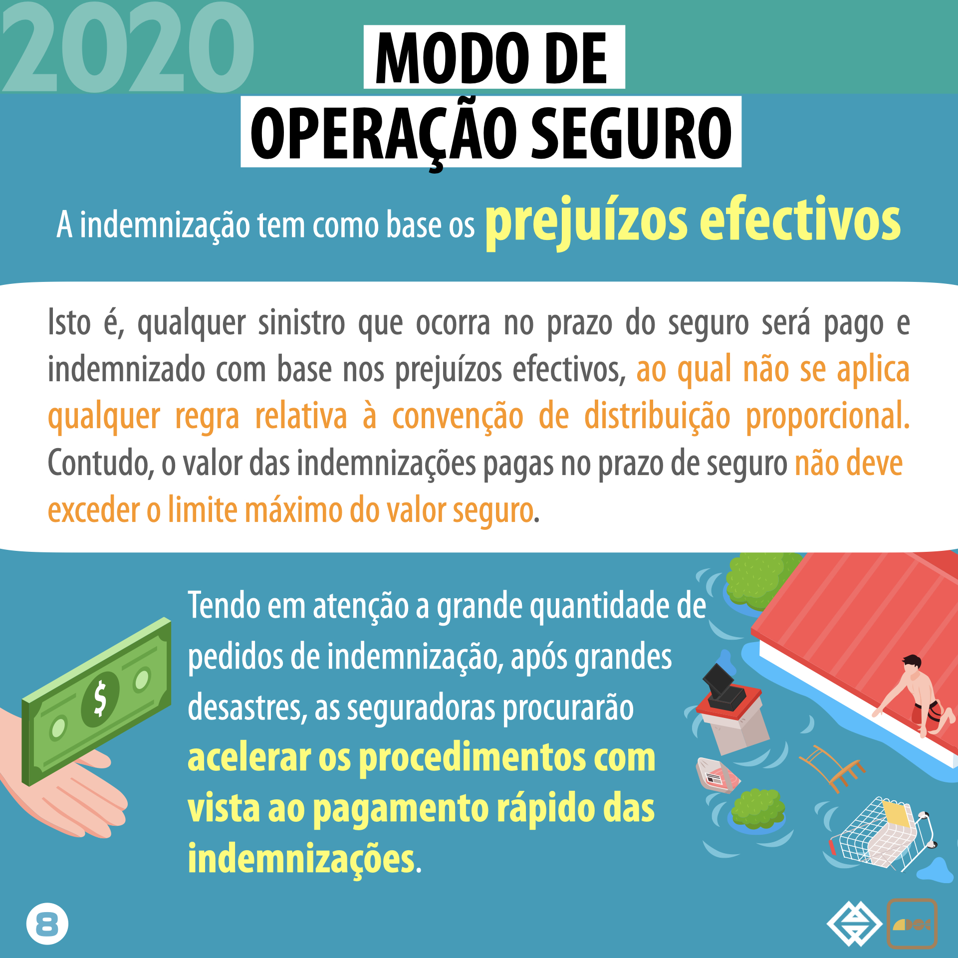 Para facilitar a aquisição de Seguro contra grandes desastres e a solicitação de financiamento, “num só local”, por parte dos comerciantes interessados, as seguradoras podem ajudar a colectar e transferir os documentos do pedido de apoio financeiro. Tendo em atenção a grande quantidade de pedidos de indemnização, após grandes desastres, as seguradoras procurarão acelerar os procedimentos com vista ao pagamento rápido das indemnizações.