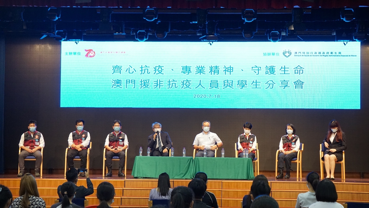 Organizada pela Associação Geral de Estudantes Chong Wa de Macau e co-organizada pelos Serviços de Saúde decorreu sábado, 18 de Julho, a actividade “Trabalhar em conjunto para combater a epidemia com profissionalismo e proteger vidas” que visou partilhar com estudantes a missão efectuada por profissionais de saúde de Macau na luta contra a epidemia em África.