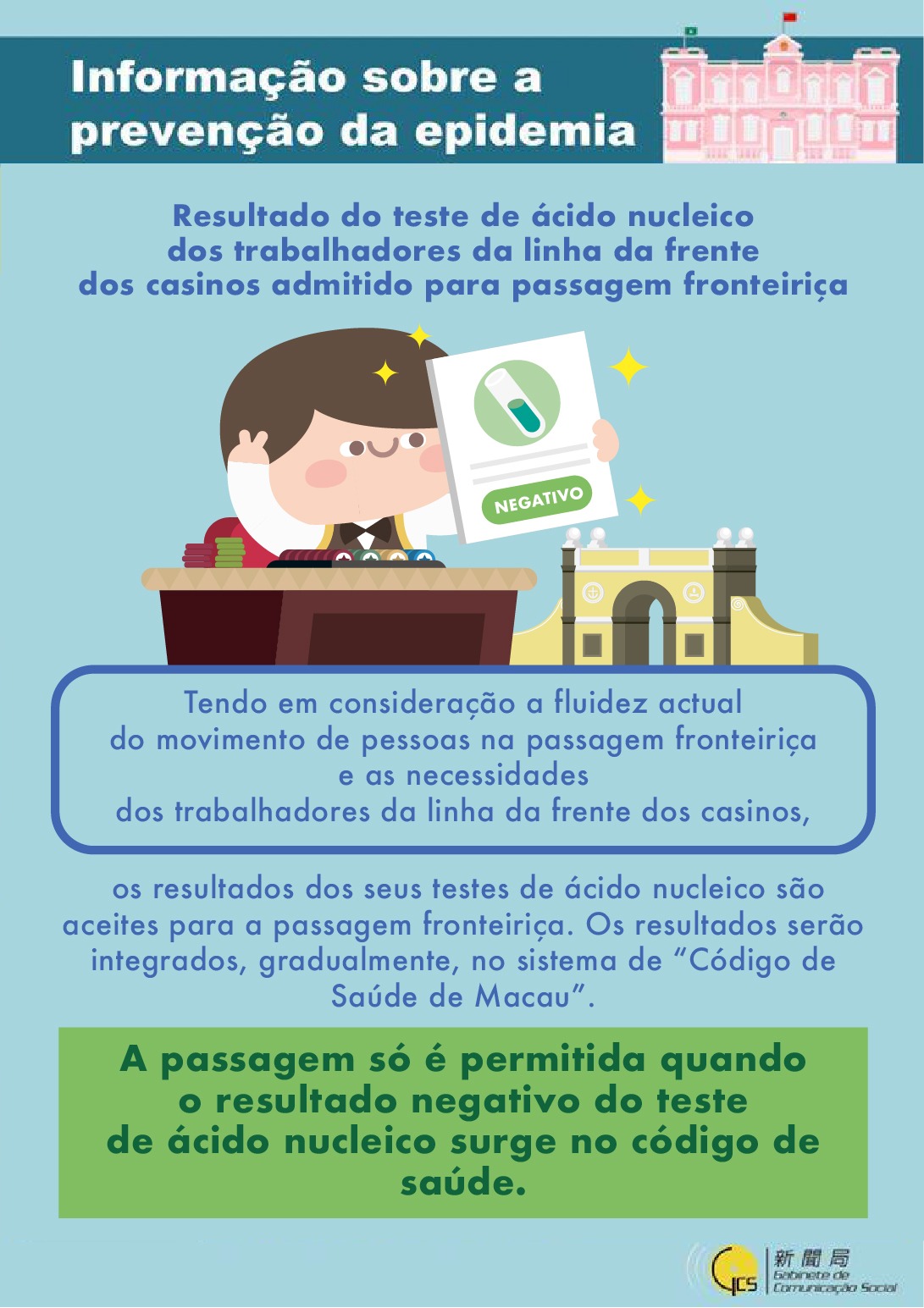 Resultado do teste de ácido nucleico dos trabalhadores da linha da frente dos casinos admitido para passagem fronteiriça