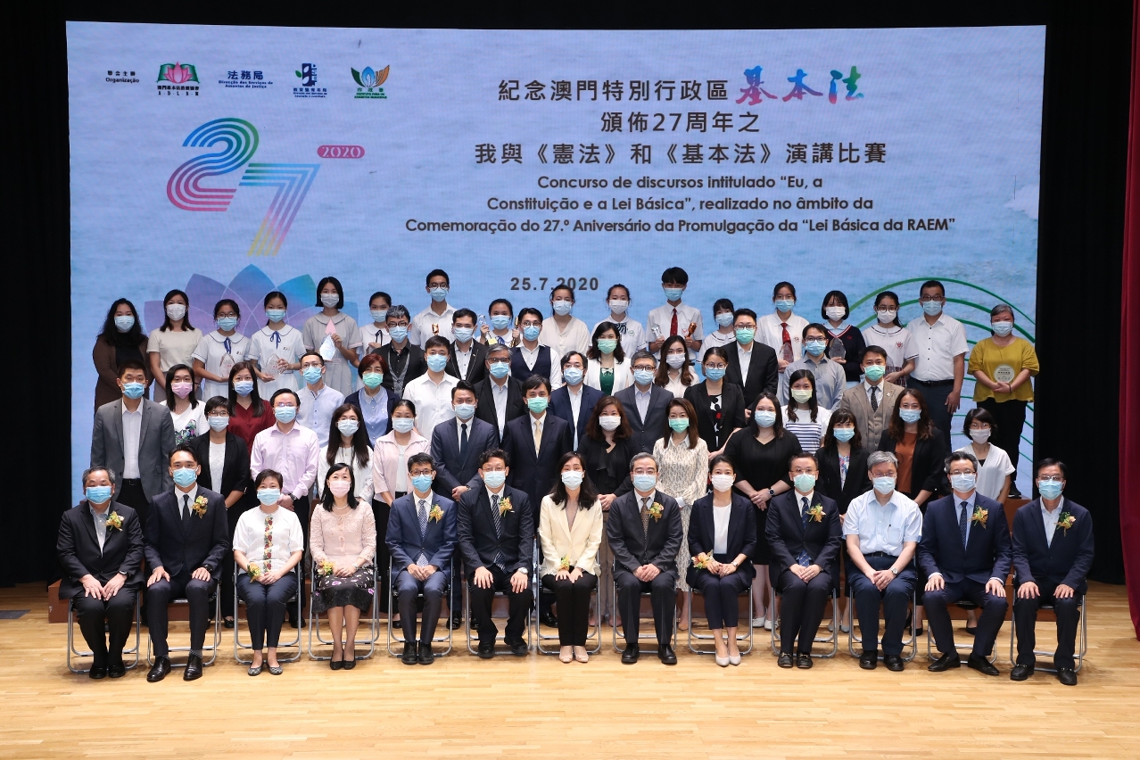 A fim de continuar a promover a Constituição e a Lei Básica junto dos jovens, foi realizada com sucesso, no dia 25 de Julho, a fase final do Concurso de discursos “Eu, a Constituição e a Lei Básica”, realizado no âmbito da Comemoração do 27.º Aniversário da Promulgação da “Lei Básica da RAEM”, no auditório da Escola Luso-Chinesa Técnico-Profissional. O Concurso foi organizado, conjuntamente, pela Direcção dos Serviços de Educação e Juventude, pela Associação de Divulgação da Lei Básica de Macau, pela Direcção dos Serviços de Assuntos de Justiça e pelo Instituto para os Assuntos Municipais.