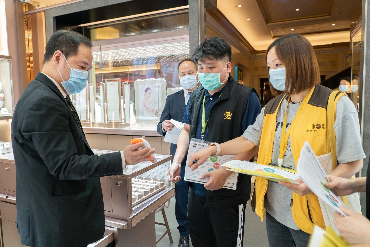 Com vista à preparação para a vinda dos turistas a Macau, a Direcção dos Serviços de Economia (DSE) e o Conselho de Consumidores (CC) continuam a enviar, hoje (dia 14), pessoal a zonas turísticas da Taipa e centros comerciais de vários resorts no Cotai para apresentar detalhadamente as orientações de prevenção da epidemia junto dos comerciantes retalhistas e tomar conhecimento da sua situação da implementação, a fim de assegurar a implementação eficaz dos trabalhos preventivos de epidemia, permitindo aos turistas deslocarem-se a Macau para viajar e fazer compras sem preocupações.