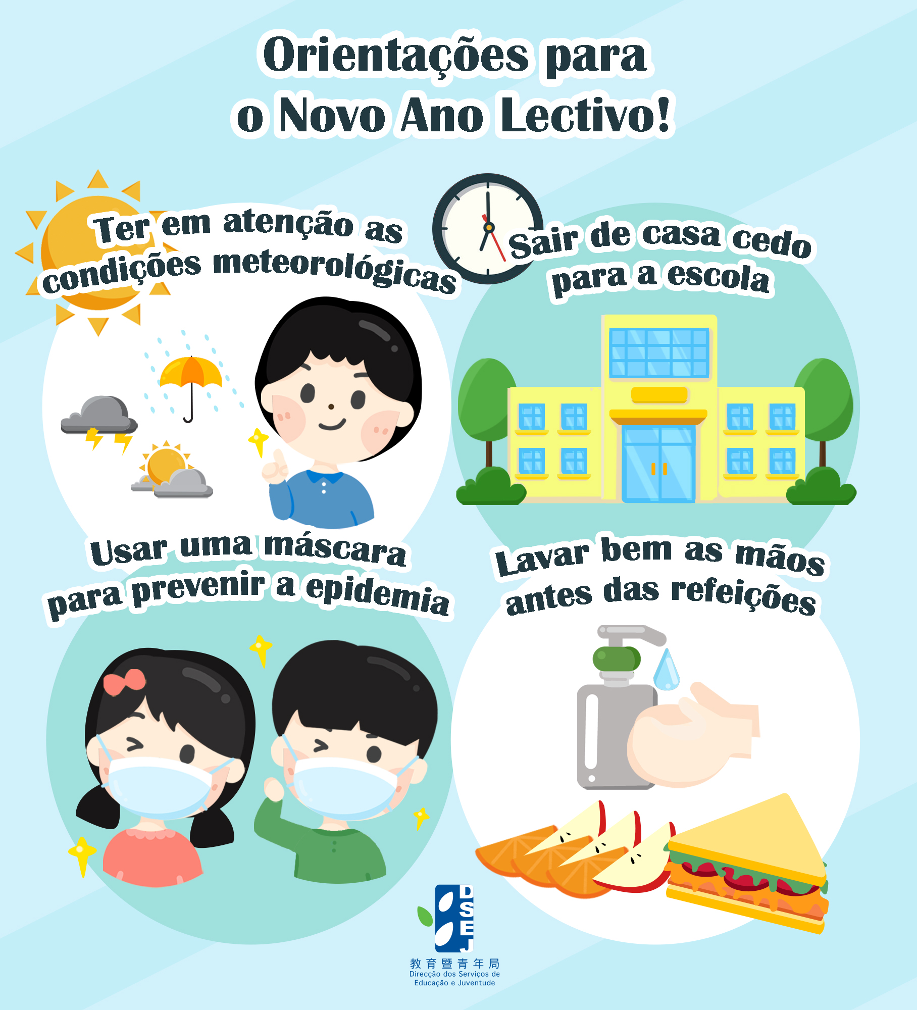 O novo ano lectivo está a aproximar-se e as escolas dos ensinos infantil, primário, secundário e especial de Macau iniciarão as suas aulas em princípios de Setembro, com horários diferenciados. A Direcção dos Serviços de Educação e Juventude (DSEJ) apela aos pais/encarregados de educação para prestarem atenção às medidas preventivas da epidemia do Governo da RAEM, ao trânsito, ao tempo e às condições físicas dos seus educandos, transmitindo-lhes conhecimentos sobre a prevenção da epidemia, bem como, a importância de manterem bons hábitos de higiene. Os alunos transfronteiriços devem também ter em atenção as medidas de migração e concluir, atempadamente, o teste do ácido nucleico, para uma boa preparação do início das aulas. Para assegurar que o início do novo ano lectivo decorra sem sobressaltos, a DSEJ vai enviar pessoal às escolas, no primeiro dia do início das aulas, para se inteirar da situação.