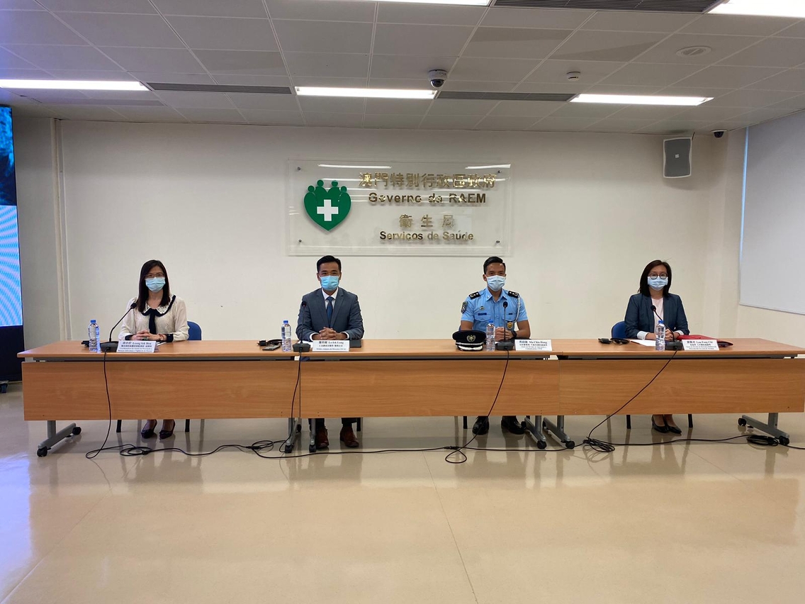 Estiveram presentes na conferência de imprensa o médico adjunto da Direcção do CHCSJ, Dr. Lo Iek Long, o Chefe da Divisão de Operações e Comunicações do Corpo de Polícia de Segurança Pública, Dr. Ma Chio Hong, a Chefe da Divisão de Relações Públicas da Direcção dos Serviços de Turismo, Dra. Lau Fong Chi, e a Coordenadora do Centro de Prevenção e Controlo da Doença, Dra. Leong Iek Hou.