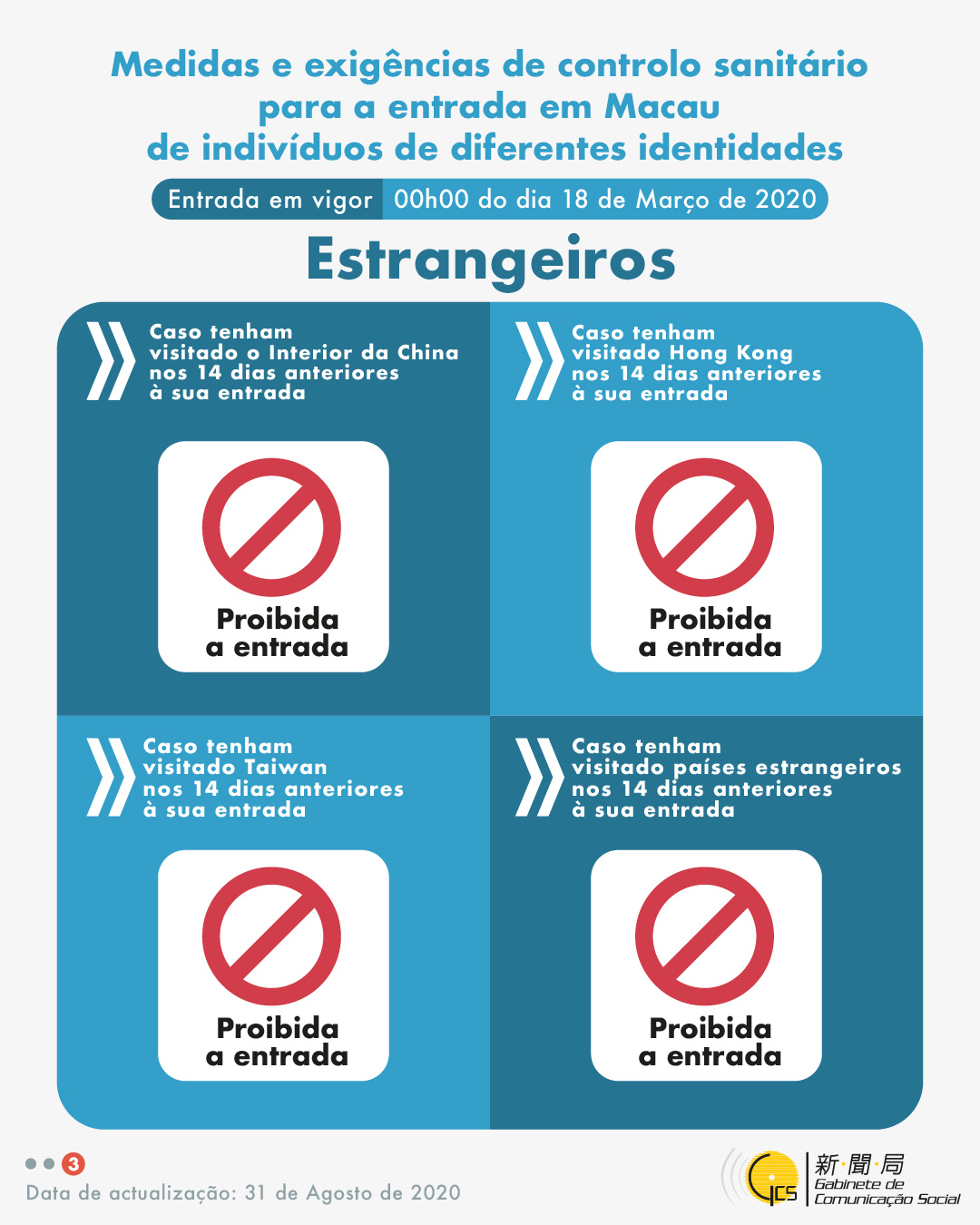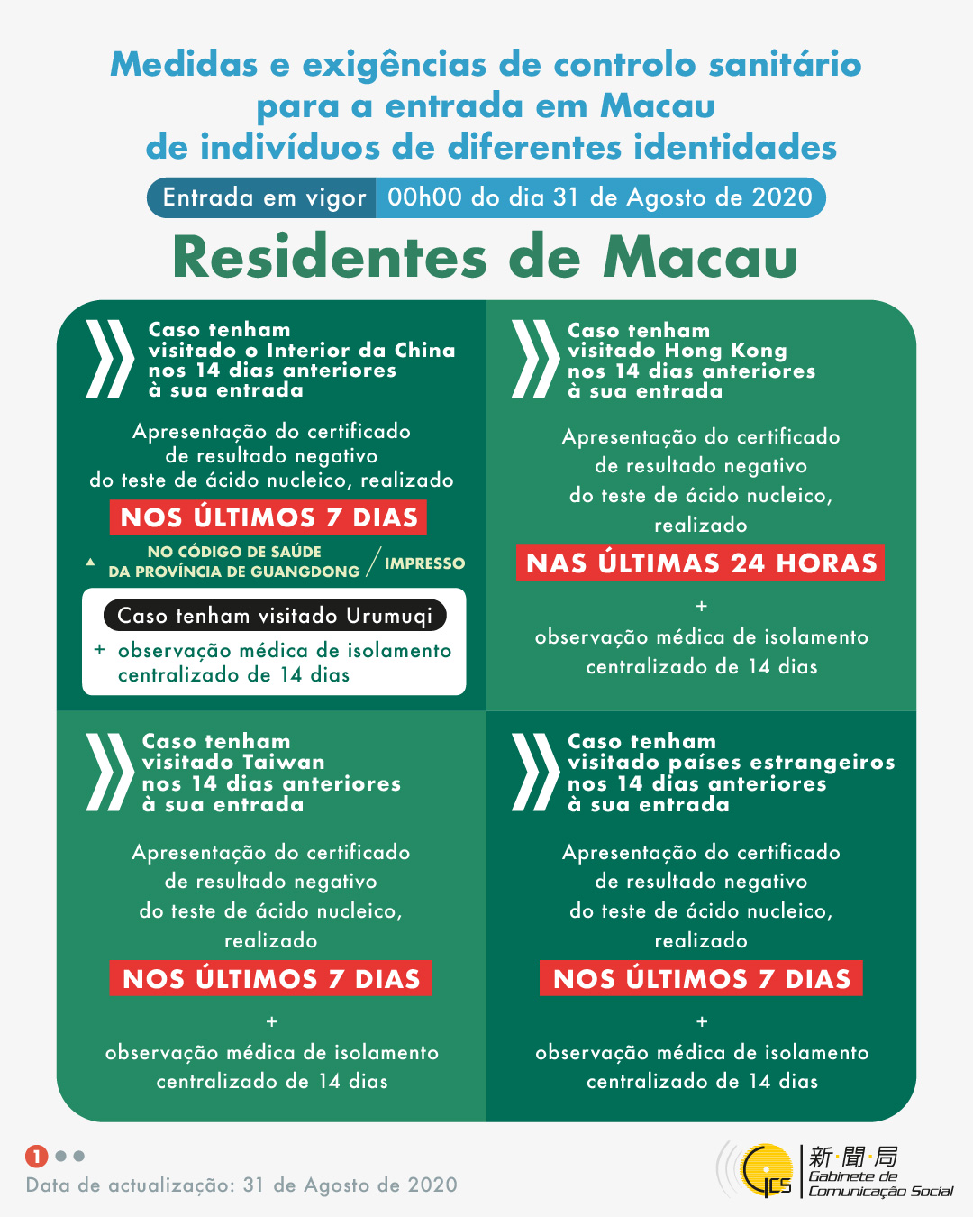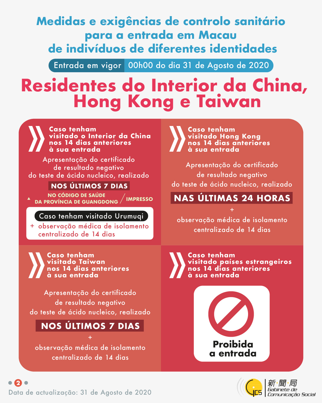 Medidas e exigências de controlo sanitário para a entrada em Macau de indivíduos de diferentes identidades