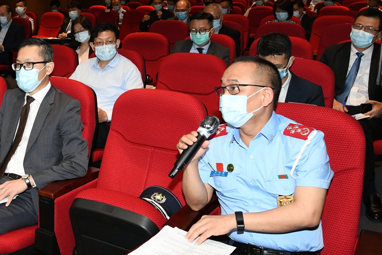 Em articulação com a entrada em vigor da Lei n.º 11/2020 “Regime Jurídico de Protecção Civil” no dia 15 de Setembro, a estrutura de protecção civil realizou, hoje (dia 4), uma sessão de esclarecimento no Edifício do Serviço de Migração em Pac On. O evento contou com a presença do Secretário para a Segurança, Wong Sio Chak, Comandante de Acção Conjunta e Comandante-geral dos Serviços de Polícia Unitários (SPU), Leong Man Cheong, Director-geral dos Serviços de Alfândega, Vong Man Chong, e os demais representantes das entidades que compõem a estrutura de protecção civil.
