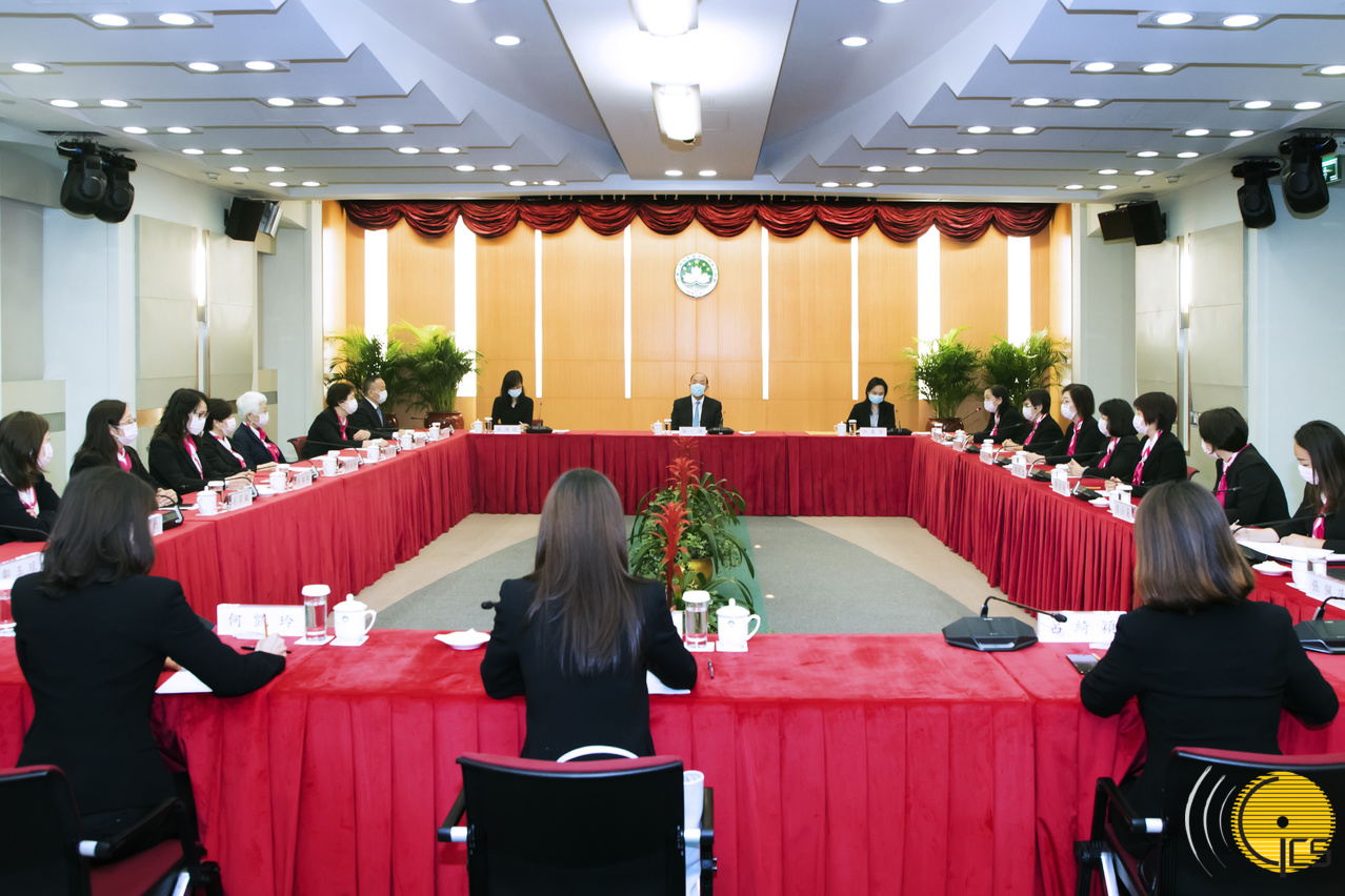 O Chefe do Executivo, Ho Iat Seng, recebeu, hoje (19 de Outubro), na Sede do Governo, a vice-presidente da Associação Geral das Mulheres de Macau (AGMM), Iong Weng Ian e outros membros dos corpos sociais da associação, para ouvir as opiniões e sugestões no âmbito das Linhas de Acção Governativa (LAG) para o ano financeiro de 2021.