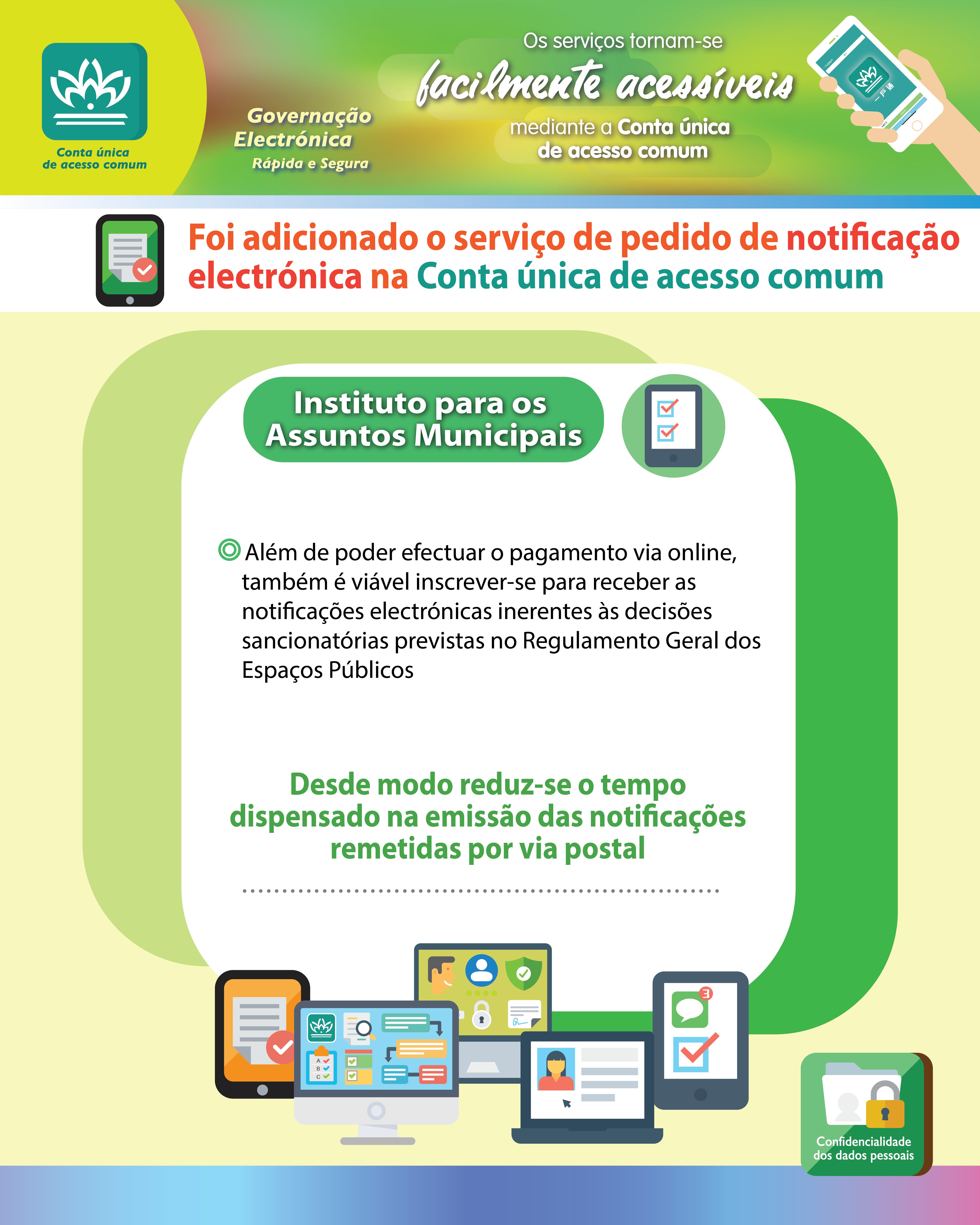 Por intermédio da aplicação para telemóvel Acesso comum aos serviços públicos, os cidadãos podem efectuar o pagamento de multas por infracção do Regulamento Geral dos Espaços Públicos, e aqueles que se inscreverem para receberem as notificações electrónicas receberão as decisões sancionatórias no telemóvel, evitando, deste modo, o tempo dispensado na emissão das notificações por via postal.