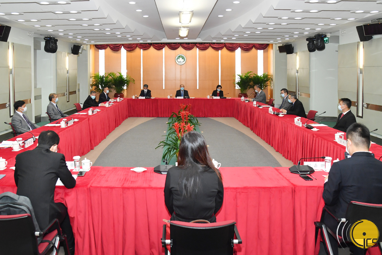 O Chefe do Executivo, Ho Iat Seng, teve, hoje (29 de Outubro), um encontro, com os representantes da Federação das Associações dos Trabalhadores da Função Pública de Macau, na Sede do Governo, para ouvir as opiniões e sugestões sobre as Linhas de Acção Governativa (LAG) para o ano financeiro de 2021.