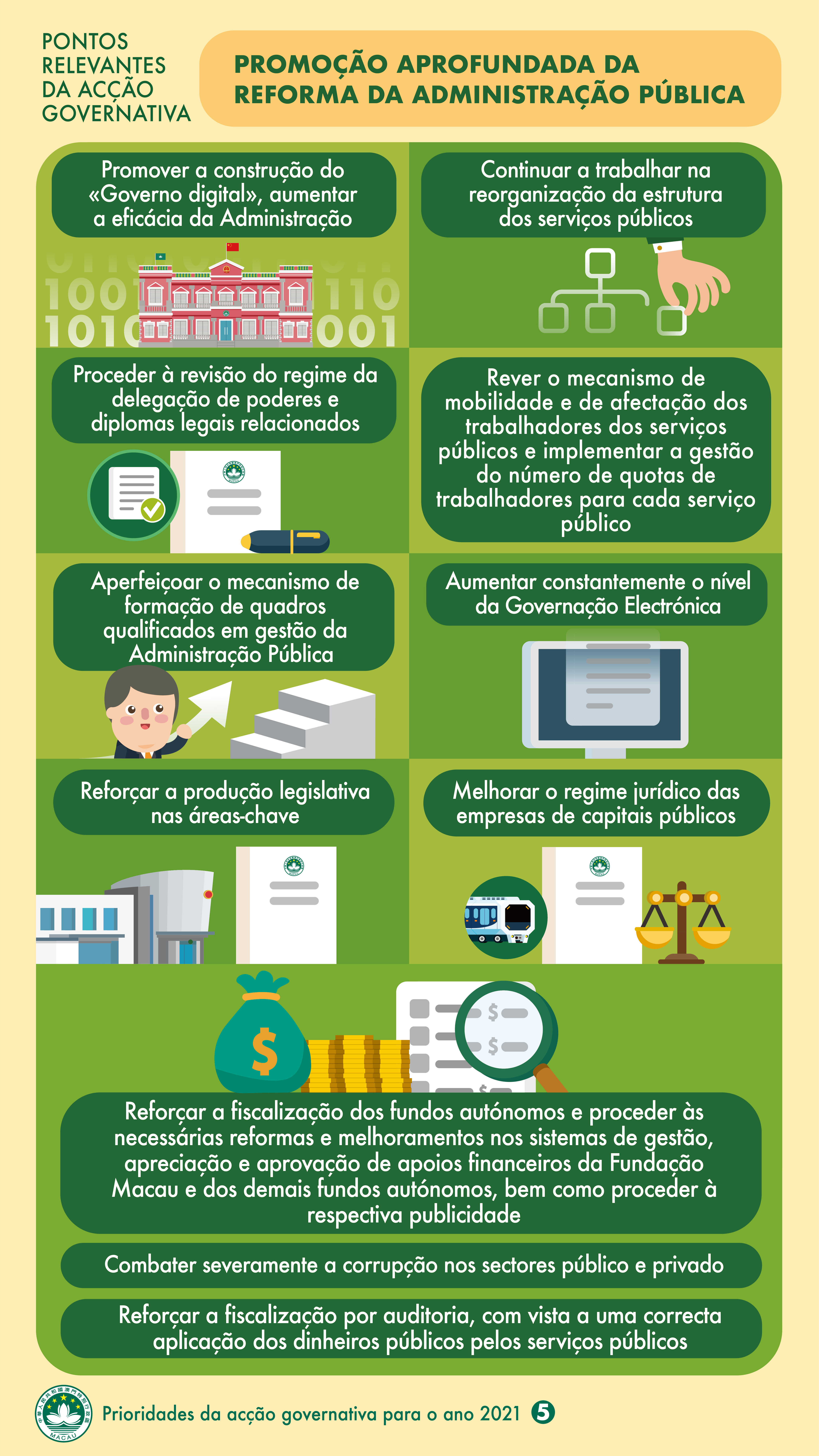 【Infografia】Pontos relevantes da acção governativa para 2021: Promoção aprofundada da reforma da Administração Pública