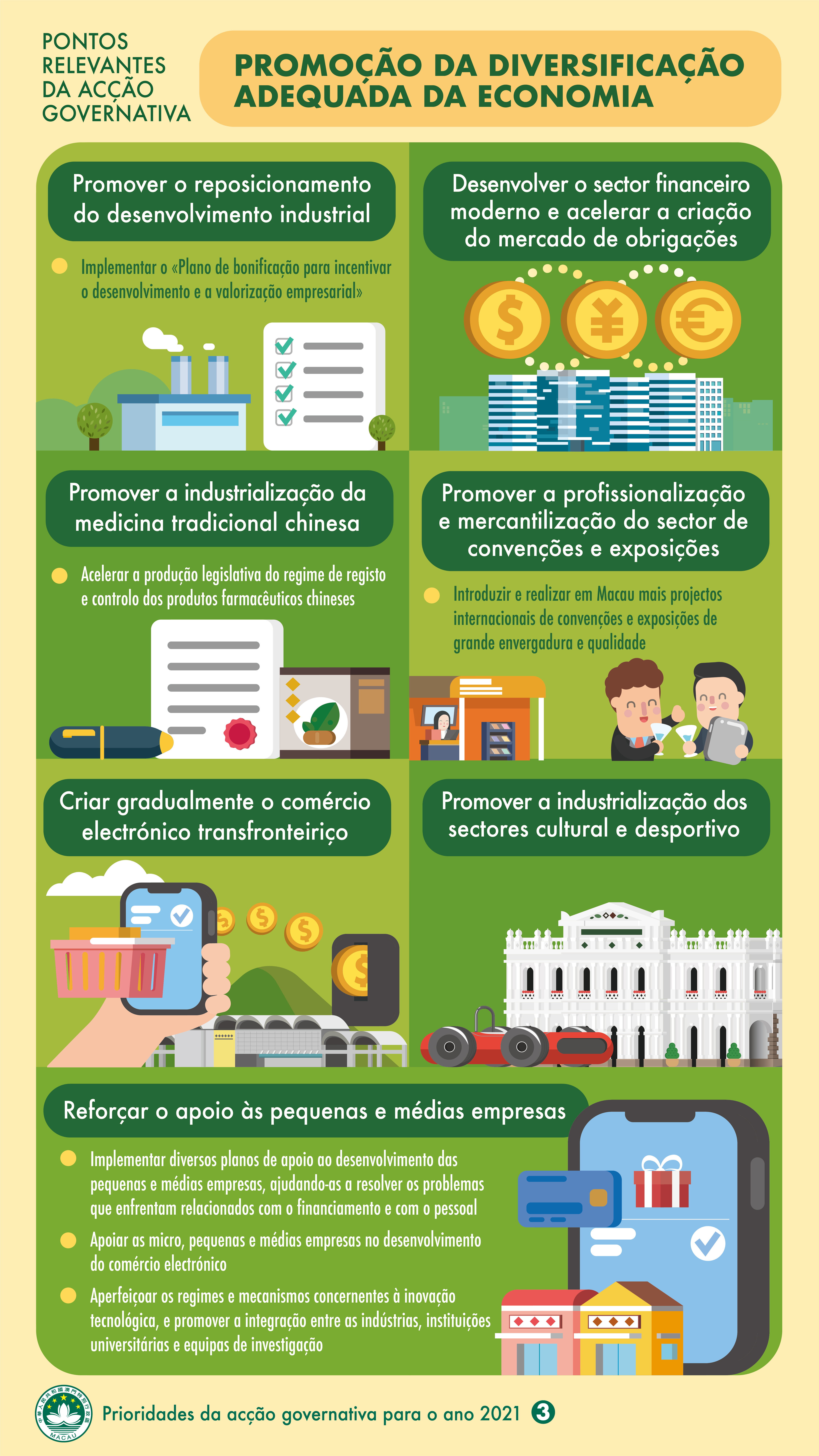 【Infografia】Pontos relevantes da acção governativa para 2021: Promoção da diversificação adequada da economia