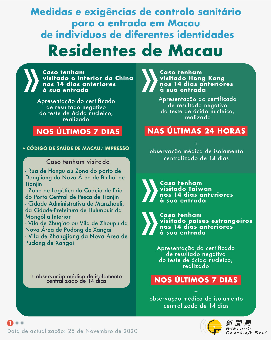(Infografia) Medidas e exigências de controlo sanitário para a entrada em Macau de indivíduos de diferentes identidades