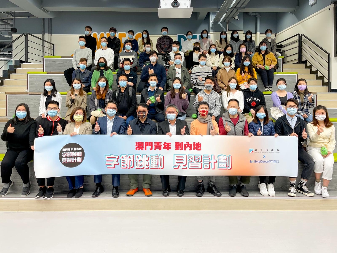 A Direcção dos Serviços para os Assuntos Laborais (DSAL), em cooperação com a “Beijing ByteDance Technology Co. Ltd.” (adiante designada por “ByteDance”), lançou o “Plano de Estágio na ByteDance para Jovens de Macau no Interior da China” (adiante designado por “Plano”). Para que os jovens interessados em integrar no sector da tecnologia de Internet possam conhecer o Plano e as perspectivas de desenvolvimento deste sector, a DSAL realizou hoje (dia 9) uma conferência para lançamento e compartilhamento do Plano no Centro de Incubação de Negócios para os Jovens de Macau, tendo em conta ao número limitado de vagas e ao esgotamento de todas as vagas, assim foi também transmitido em directo o evento ao vivo.