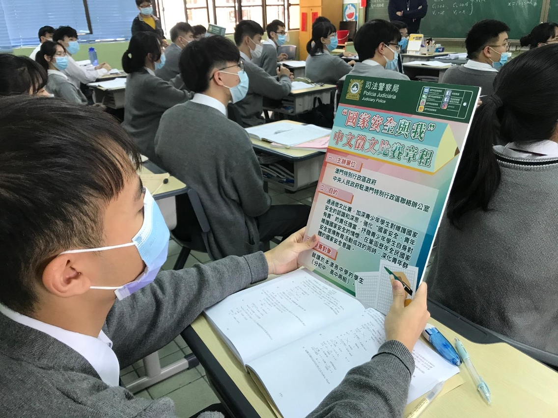 O regulamento e boletins de inscrição do concurso de composição em língua chinesa «Eu e a Segurança Nacional», co-organizado pelo Governo da Região Administrativa Especial de Macau (RAEM) e o Gabinete de Ligação do Governo Popular Central na RAEM, foram enviados, no início de Fevereiro, a todas escolas secundárias de Macau. Os alunos interessados poderão apresentar os textos, até 15 de Março, através da sua escola, e deseja-se a uma participação activa.