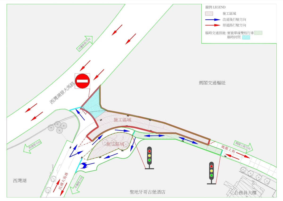 - Encerramento temporário do cruzamento da Avenida Panorâmica do Lago Sai Van com a Rua de S. Tiago da Barra e a Avenida da República;