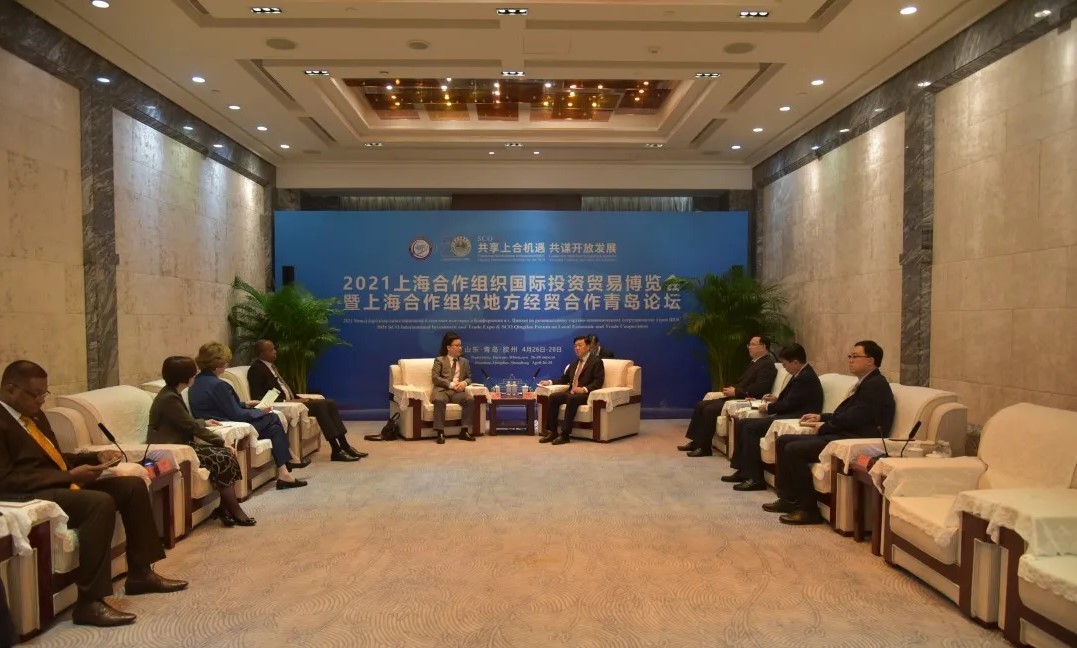 Entre os dias 25 e 27 de Abril, uma delegação do Secretariado Permanente do Fórum de Macau, chefiada pelo seu Secretário-Geral Adjunto, Dr. Ding Tian, deslocou-se à cidade de Jiaozhou do Município de Qingdao para participarem na Cerimónia de Inauguração da “2021 Exposição Internacional de Investimento e Comércio da Organização para Cooperação de Xangai da China e Fórum para a Cooperação Económica e Comercial a Nível Local (Qingdao)” e realizar o Encontro de Intercâmbio para a Cooperação Económica e Comercial entre a China e os Países de Língua Portuguesa. Para além disso, a delegação ainda visitou a Zona de Demonstração Local da Organização para Cooperação de Xangai da China como também empresas locais.