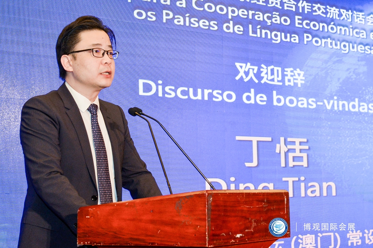 No dia 27, o Encontro de Intercâmbio para a Cooperação Económica e Comercial entre a China e os Países de Língua Portuguesa foi co-organizado pelo Secretariado Permanente do Fórum e pelo Conselho de Administração da Zona de Demonstração da Organização para Cooperação de Xangai da China, ocasião pela qual o Secretário-Geral Adjunto, Dr. Ding Tian aproveitou para dar um discurso de boas-vindas.