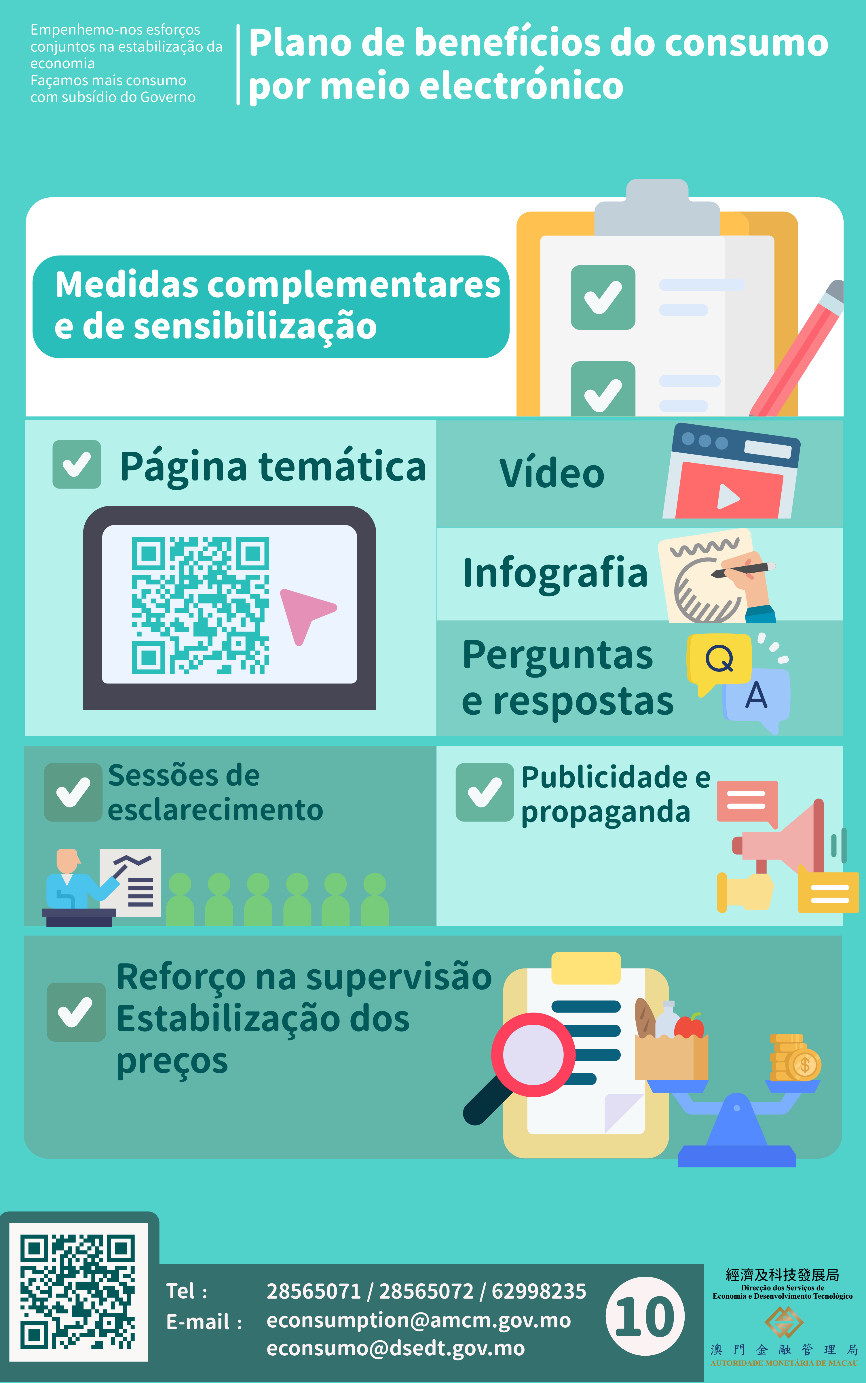 A DSEDT e a AMCM produziram aminação promocional, um vídeo de demonstração, infografia e compilação de perguntas e respostas que constam na “Página exclusiva do Plano de benefícios do consumo por meio electrónico” (www.dsedt.gov.mo/2021consumo), permitindo que os residentes tenham um conhecimento profundo através dos meios multimédia.